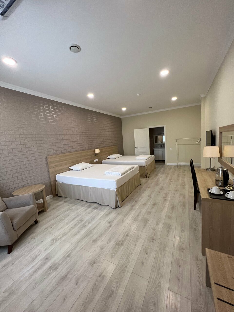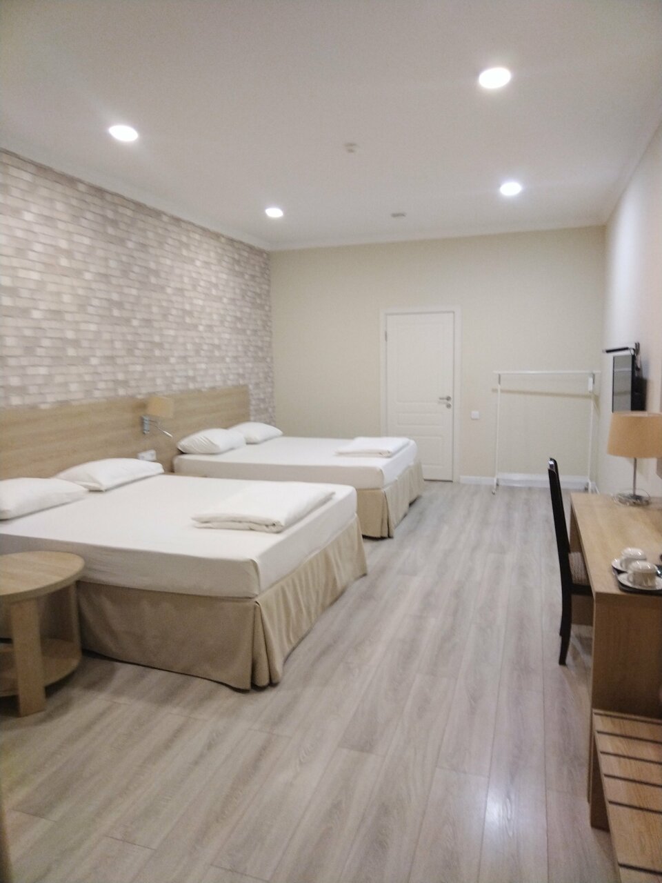 Хороший отель. Ночевали 2 раза. Когда ехали в дагестан, и на обратном пути. Чисто. Уютно. Есть 2 вида номеров. Маленькие двухместные без окна и с удобствами в коридоре. И семейные с ванной комнатой в номере.