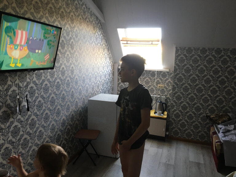 Уютный номер на троих. Я была с двумя детьми. Чисто в номере. Под кроватью пыли нет ))) проверенно 10 летним сыном, который играл в прятки В номере большой холодильник, чайник и 3 стакана. В ванной жидкое мыло. В общем коридоре гладильная доска с утюгом и микроволновой. Единственное, что я думала пакетики чая нам положат к чайнику , но это не случилось. Пришлось пакетики чая покупать на ресепшене по 30 руб. Либо упаковку за 150р. Короче берите чай с собой.