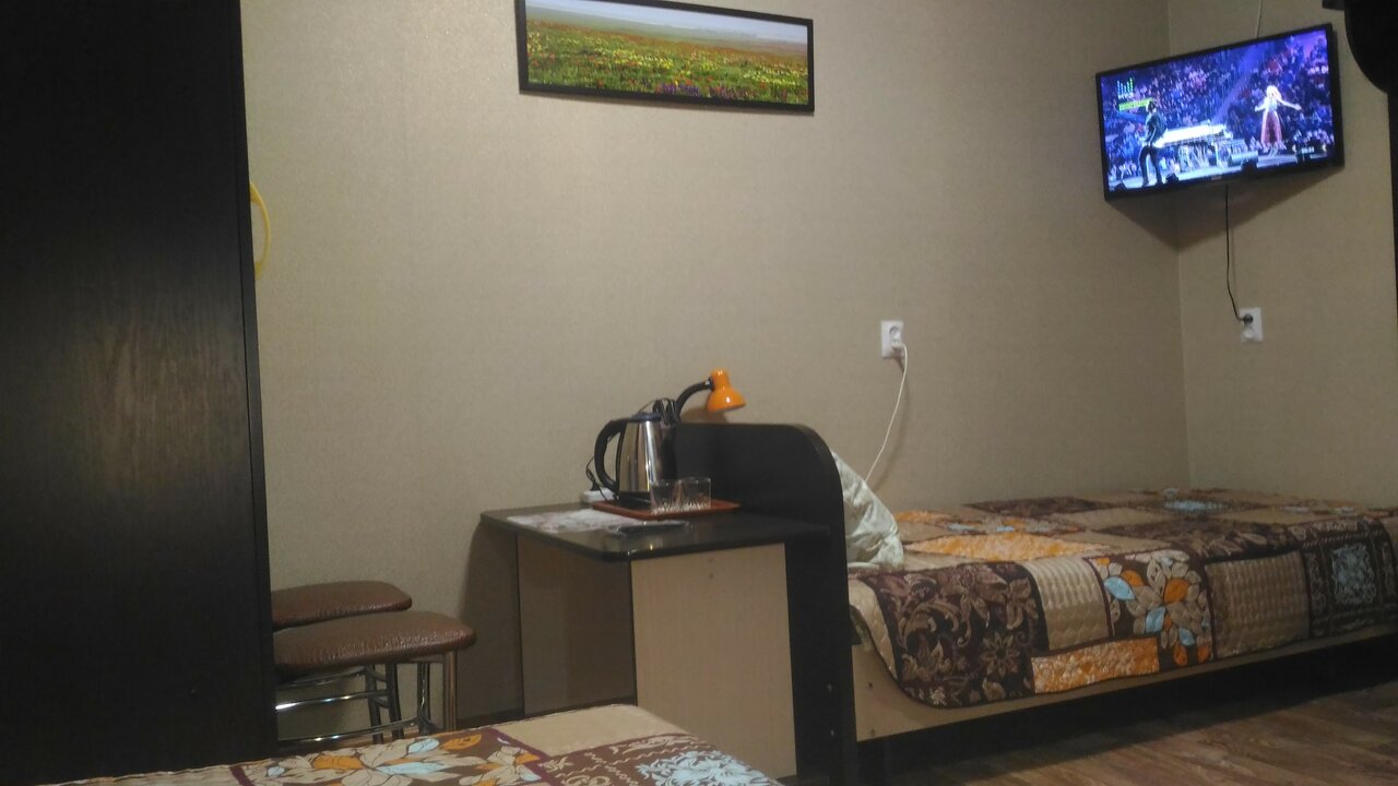 Очень чисто и не дорого! Приветливый персонал. Брали номер с санузлом, били приятно удивлены — все работает. В номере был телевизор, столик, два стула, чайник, 4 чистейших полотенца, новое постельное белье. Отдельно хочу отметить очень удобную кровать и чистый матрас. Подушки ничем не пахнут, в номере тоже пахнет приятно. Единственный незначительный минус — очень тонкие стены, все слышно. И то что в соседнем номере, и то что в коридоре. Но персонал старается соблюдать тишину. В номере тепло и есть сплит система.