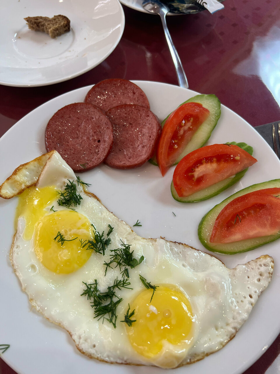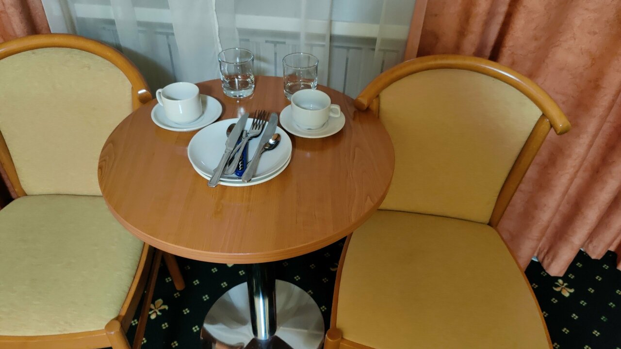 Скажу что гостиница на три звезды не тянет от слова совсем. Ремонт похоже не делался очень давно. Просто остатки былого величия! Номер как после побоища. Стеклопакет разбит, гипсокартон пробит, ванна со сколом, ограничитель двери отломан, стул разваливается. Вайфай не подключается. Такое чувство, что хозяина нет, а служащим всё равно. И поседняя вишенка на торте это завтрак. Заказали ещё при заселении, т.е. вечером. Утром все сидят за столами и 20 минут ждут когда сварится каша. Хлеб забыли вынести в зал, оливье прокисшее. Впечатлений масса! Из позитивных- белоснежная постель и бесплатная парковка, остальные все негативные. Как-то так…
