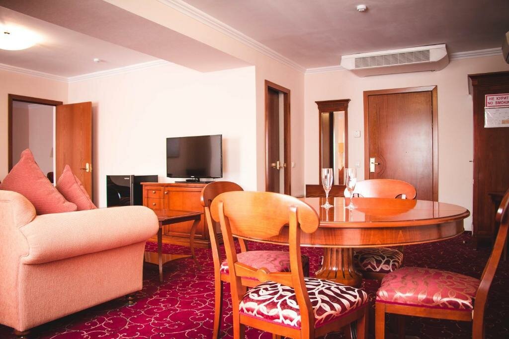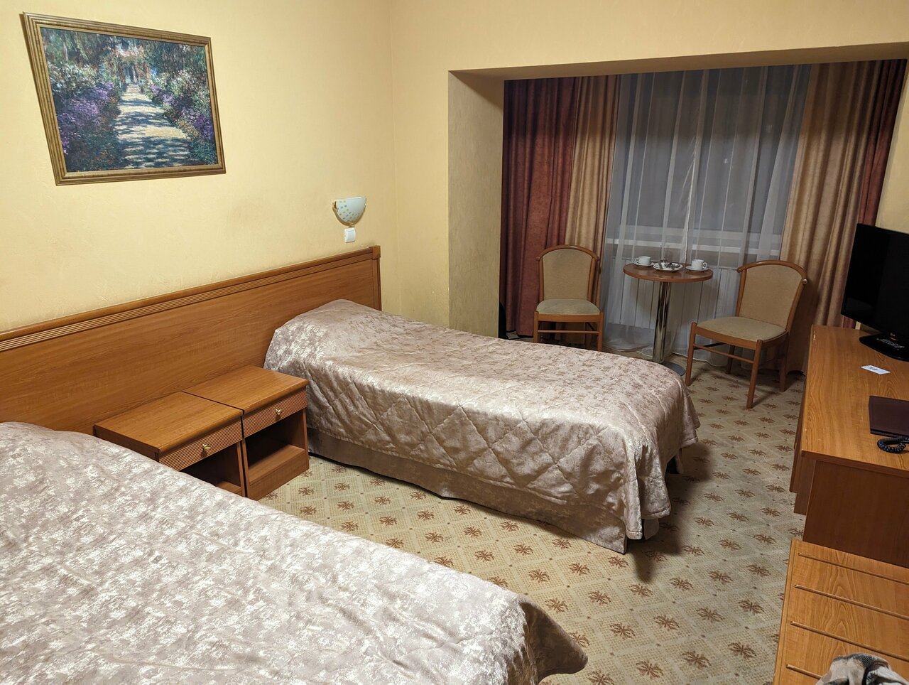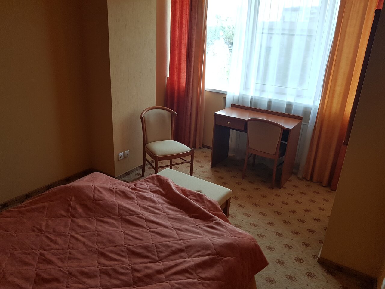 Хорошая гостиница. В номере чисто, уютно. Номер брали двухкомнатный — очень просторно. Так как трёхместный номеров не было, а нас было 3 человека, нам предложили поставить раскладушку (хорошую, новую). Белье свежее. Администратор приятная женщина. Единственно, что не было удобно, это то, что завтраки с 8 утра, нам нужно было уезжать в 7, и мы не успели.