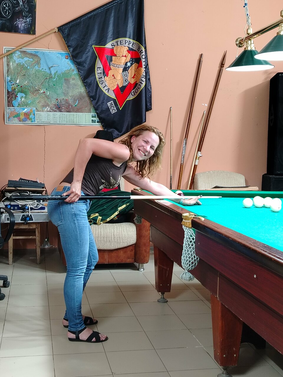 Спасибо за приют, братья! Все удобства есть, кухня, душ, бар, бильярд.