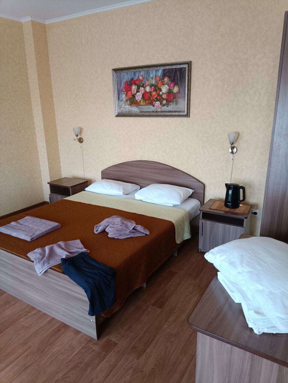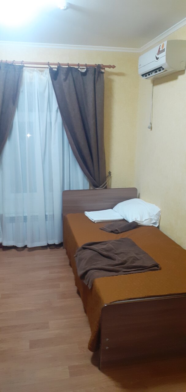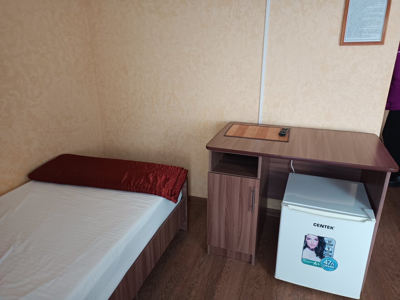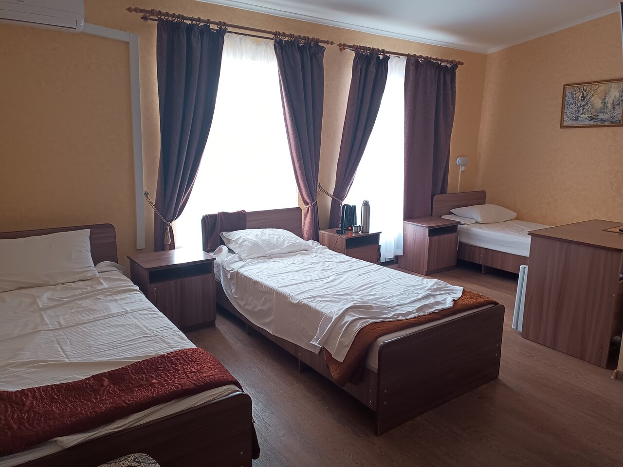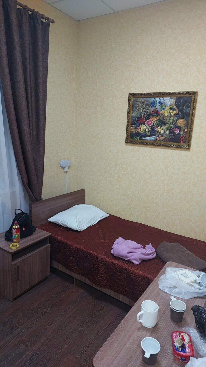 Обычная гостиница… На 3… Односпалки , проваленные матрасы,вырванная розетка… Полотенца доверия не внушили, берем всегда из дома свои, белье чистое, одеяла тонкие.. Но в номере жарко.. Не накрывались….Кабинка, унитаз, элементарное есть… Холодильник, малюсенький, чайник… Телевизор…а вот СВЧ на этаже, где тоооо… Переспать можно… Одну ночь… Персонал радушный, утром до 10.00 спали.. Никто не шумел.. Звукоизоляция песец… По коридору шаги.. Слышны, будто идут по твоему номеру…