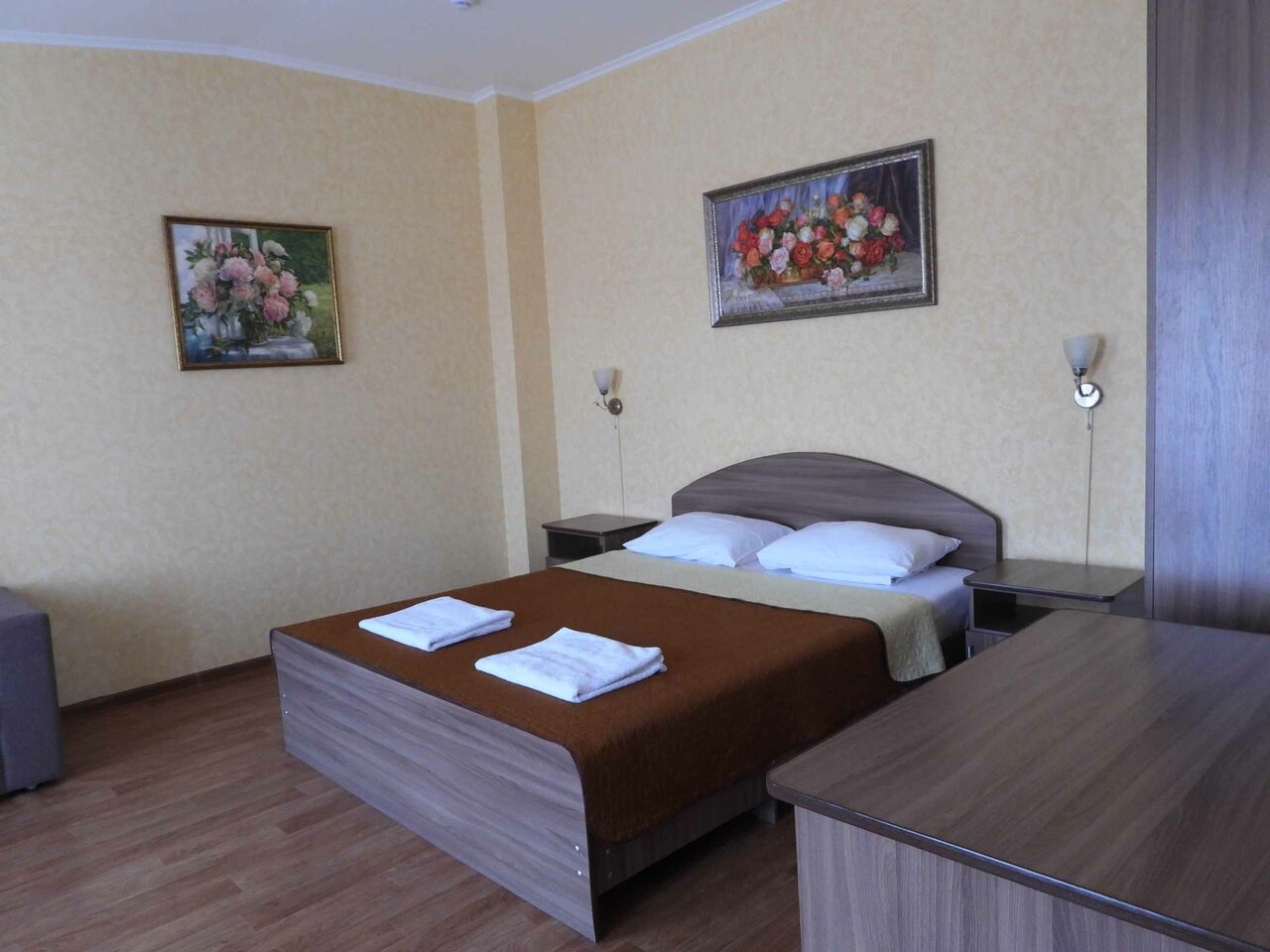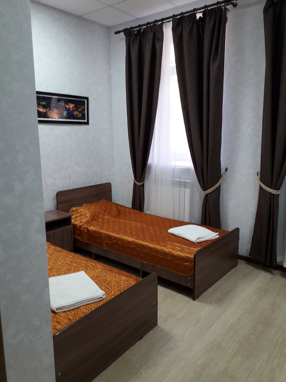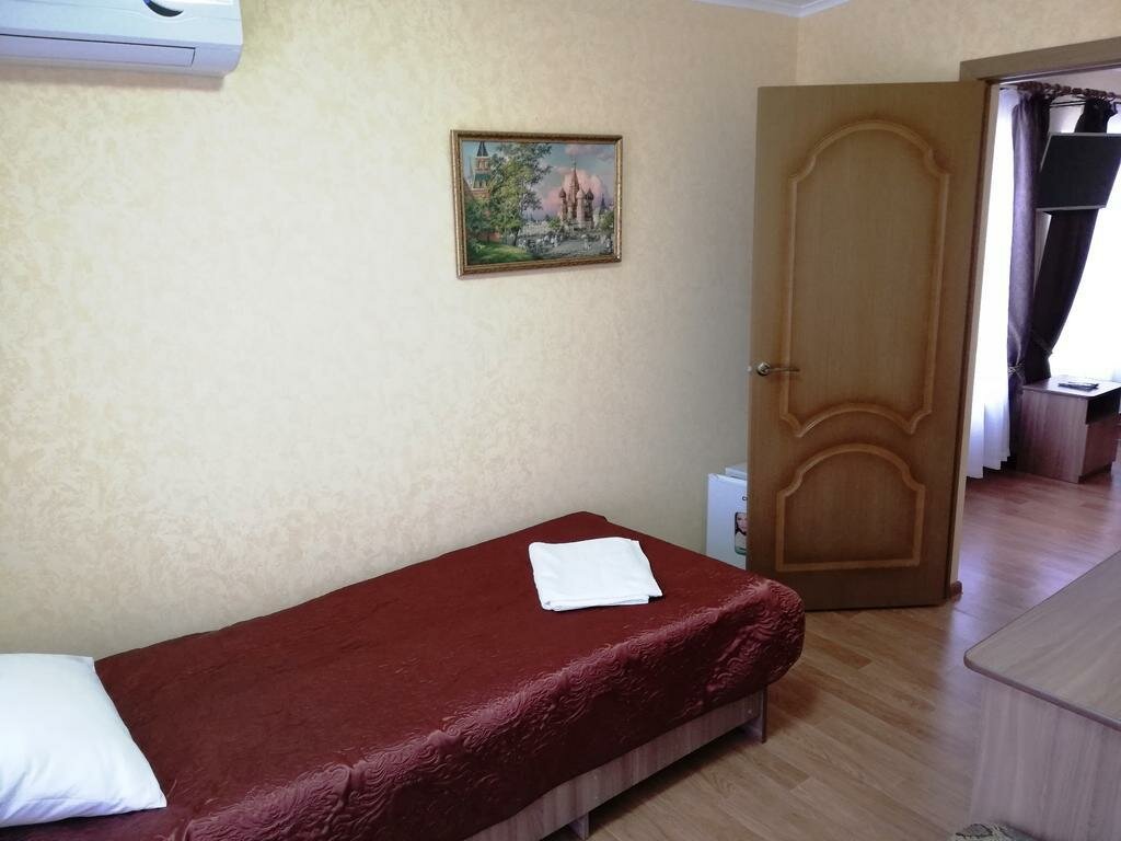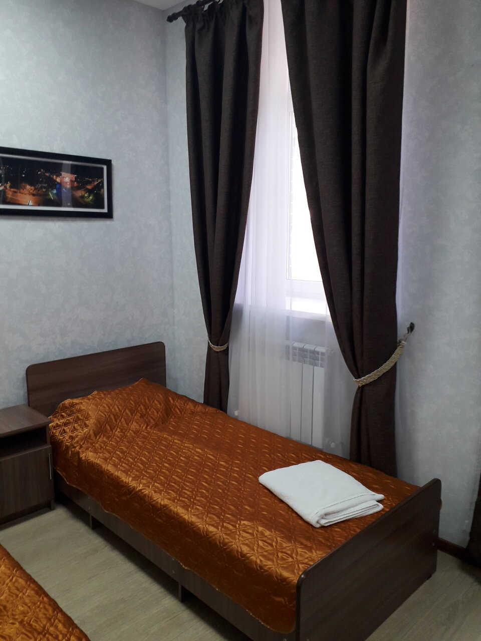 Обычная гостиница… На 3… Односпалки , проваленные матрасы,вырванная розетка… Полотенца доверия не внушили, берем всегда из дома свои, белье чистое, одеяла тонкие.. Но в номере жарко.. Не накрывались….Кабинка, унитаз, элементарное есть… Холодильник, малюсенький, чайник… Телевизор…а вот СВЧ на этаже, где тоооо… Переспать можно… Одну ночь… Персонал радушный, утром до 10.00 спали.. Никто не шумел.. Звукоизоляция песец… По коридору шаги.. Слышны, будто идут по твоему номеру…