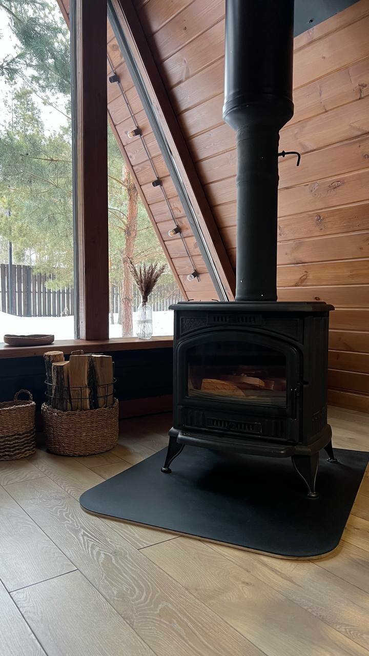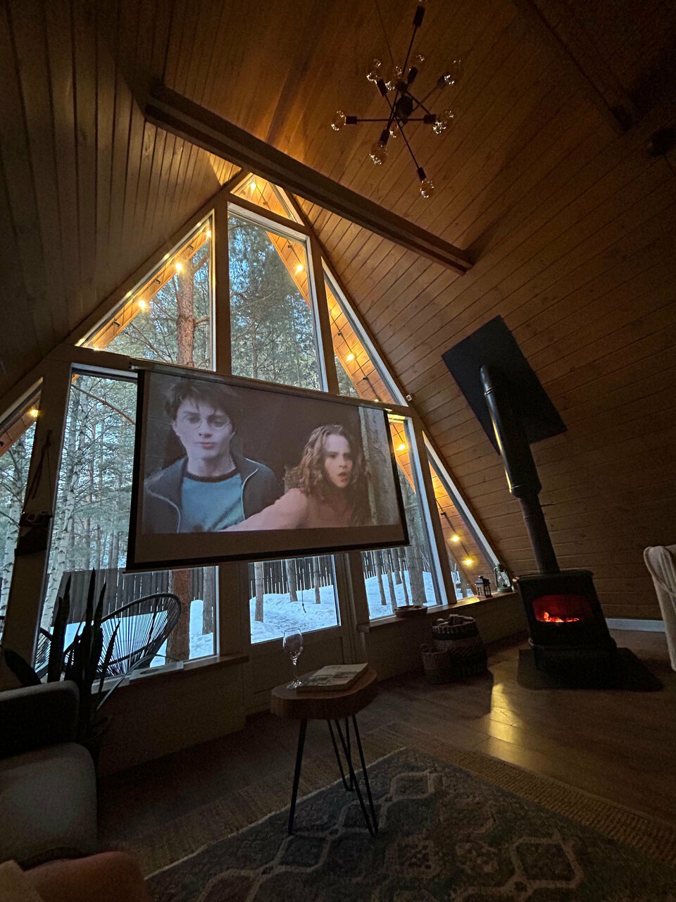 - Тишина и уединение.; Высокий спрос (популярное место).; Стильный интерьер (скандинавский стиль, ничего лишнего).; Наличие камина, проигрывателя с пластинками, проектора.; Чистый воздух и близость к сосновому лесу.