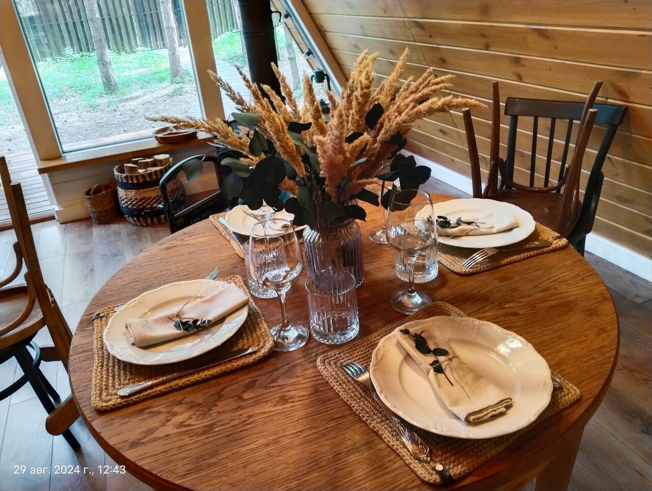 Красивое, современное, изящное место. Заселились в четвёртом и с собаками. Все очень понравилось, вода есть, тепло, камин, все для готовки, мангал и все для него) инет ловит, есть вайфай