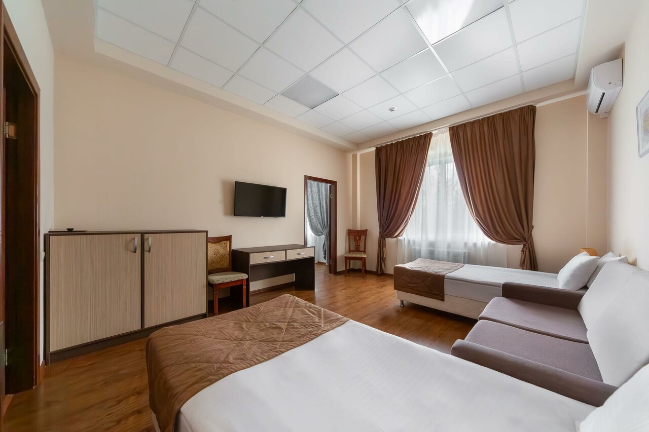 Трёхместный номер с балконом ( 1 двуспальная кровать и диван)