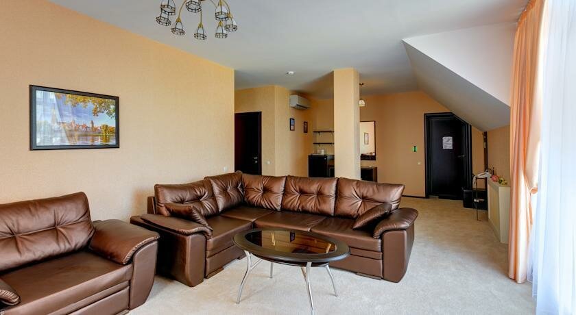 Удобства: — Номера с кондиционером, Wi-Fi, телевизором, мини-баром, феном, звукоизоляцией. — Ресторан, 2 бара, кафе, конференц-зал, банкетный зал. — Бесплатная парковка, платный трансфер (аэропорт, вокзал, ТЦ). — Детская площадка, клуб, галечный пляж, сад. — Услуги: прачечная, сейф, камера хранения, ускоренная регистрация.