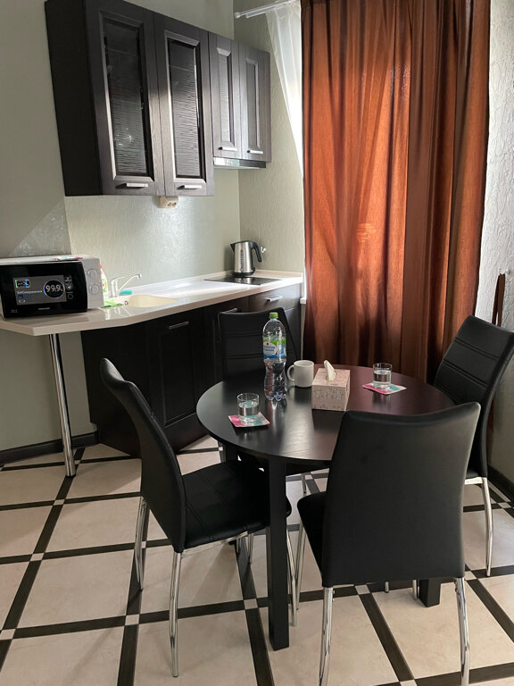 Площадь номера - 41 кв.м.В номере: 2 телевизора (в комнате и на кухне), кондиционер,Wi-Fi, двуспальная кровать, две односпальные спальные кровати,взрослое кресло-кровать,санузел с душем, Кухня, Горячая и холодная вода