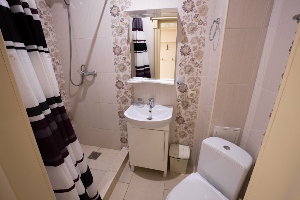 Одноместный номер-2х спальная кровать, 2 тумбочки, шкаф, телевизор, совмещенный санузел с душем, набор полотенец, гигиенический набор, Интернет Wi-Fi