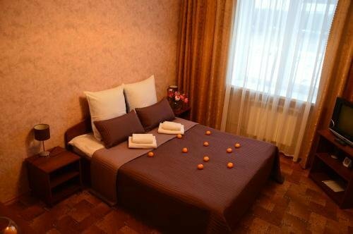 Замечательная гостиница, за 2400 заехали в 22.00 и выселили нас только через 24 часа, а не как в других выезд в 12 дня. Спасибо вам большое за это) на ресепшене пончик, смешной шиншилла))) в номерах чисто, отличные двухместные кровати. Раздали все одноразовое: тапочки, зубные и душевые наборы. Ночью есть охрана, так что можно спать спокойно) шикарный вид из окна на реку Волга. Немного не хватило холодильника в номере(он есть на этаже)но и мы брали не вип(вип дороже всего на 600р). В общем, мы в восторге, даже за сутки удалось отлично отдохнуть в Саратове! Все 5 баллов ваши) всем рекомендую, а мы вернёмся ещё!