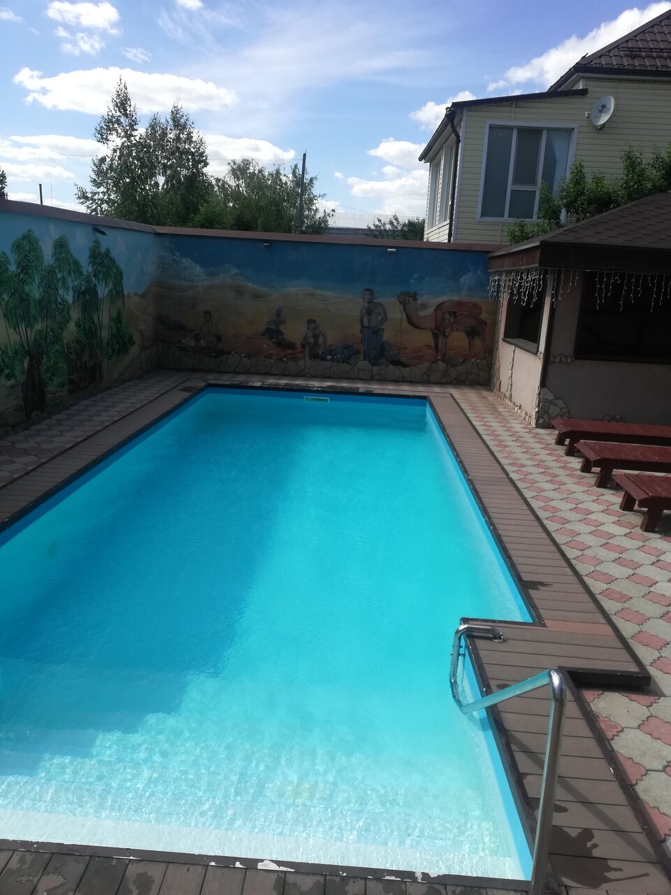 Супер бассейн и сауна, есть беседка для лета)Зимой тоже отлично , бассейн чистый и тёплый.