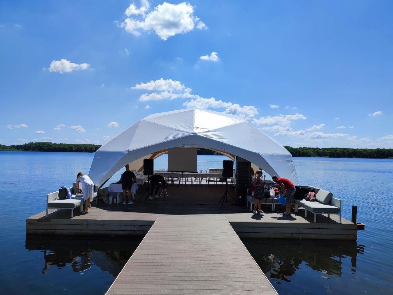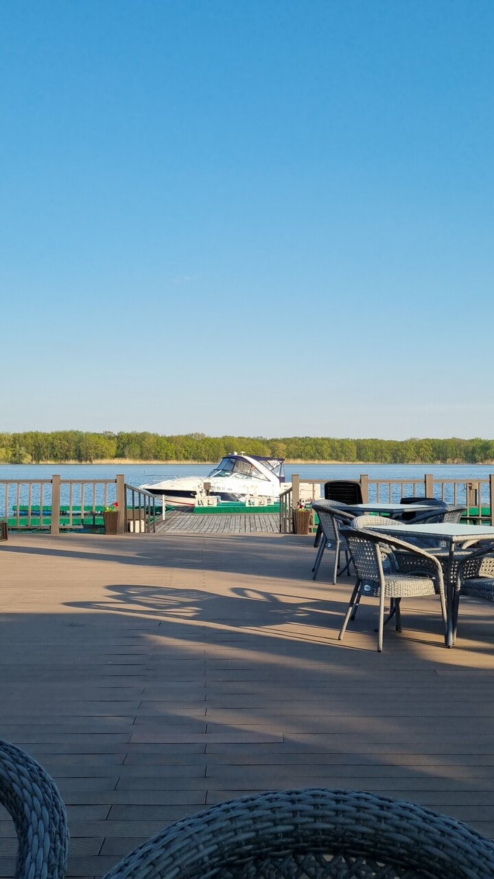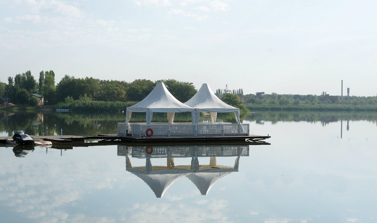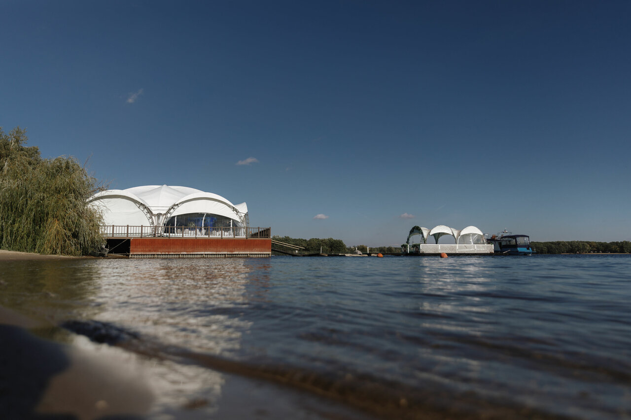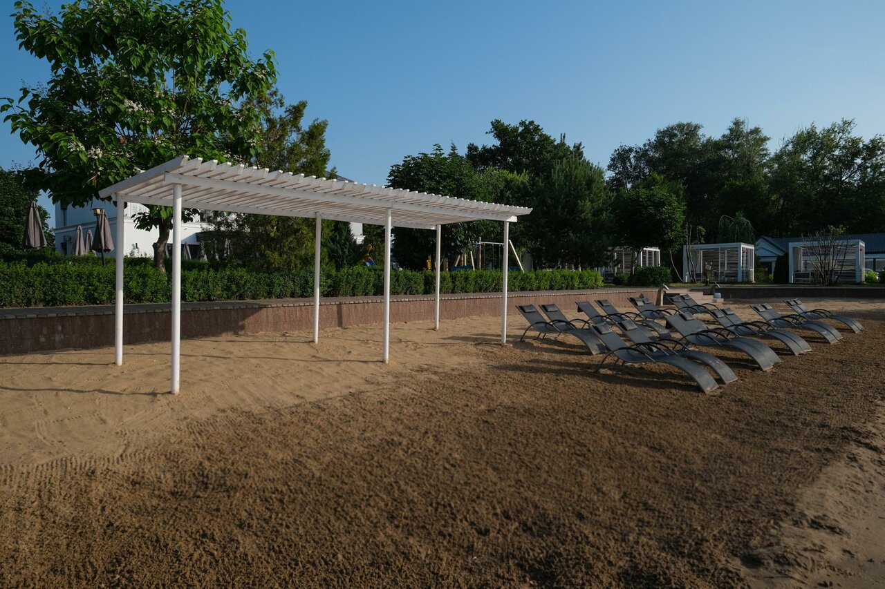 7 лет назад выбрали это место для проведения выездной регистрации брака. Хороший шатер на пирсе. Вид на протоки. В среду было мало отдыхающих. На свадебные фото посетители пляжа не попали.