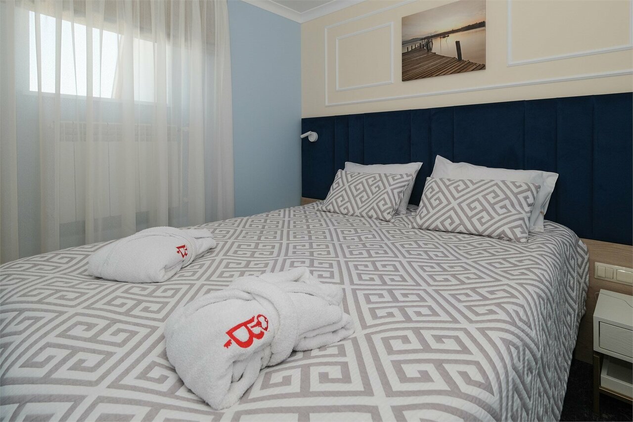 Удобства: — Номера с кондиционером, Wi-Fi, телевизором, мини-баром, феном. — Питание: ресторан, кафе, бар, завтрак (по меню). — Открытый и подогреваемый бассейны, сауна, баня, джакузи, солярий. — Ледовый каток, теннисный корт, детская площадка, игровая комната, анимация. — Пляж (300 м²), шезлонги, зонтики, рыбалка, прокат лыжного снаряжения. — Парковка (бесплатно), трансфер (платный), конференц-зал.