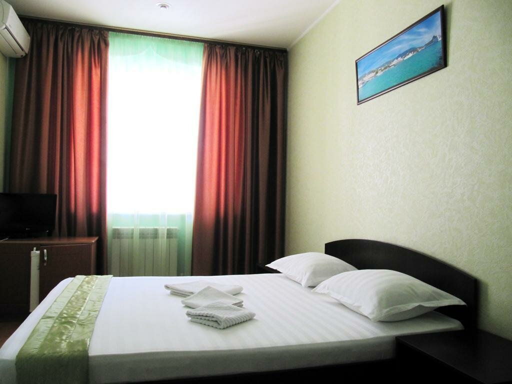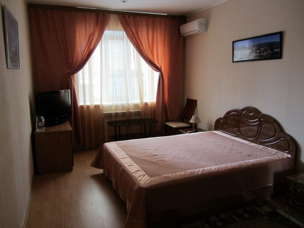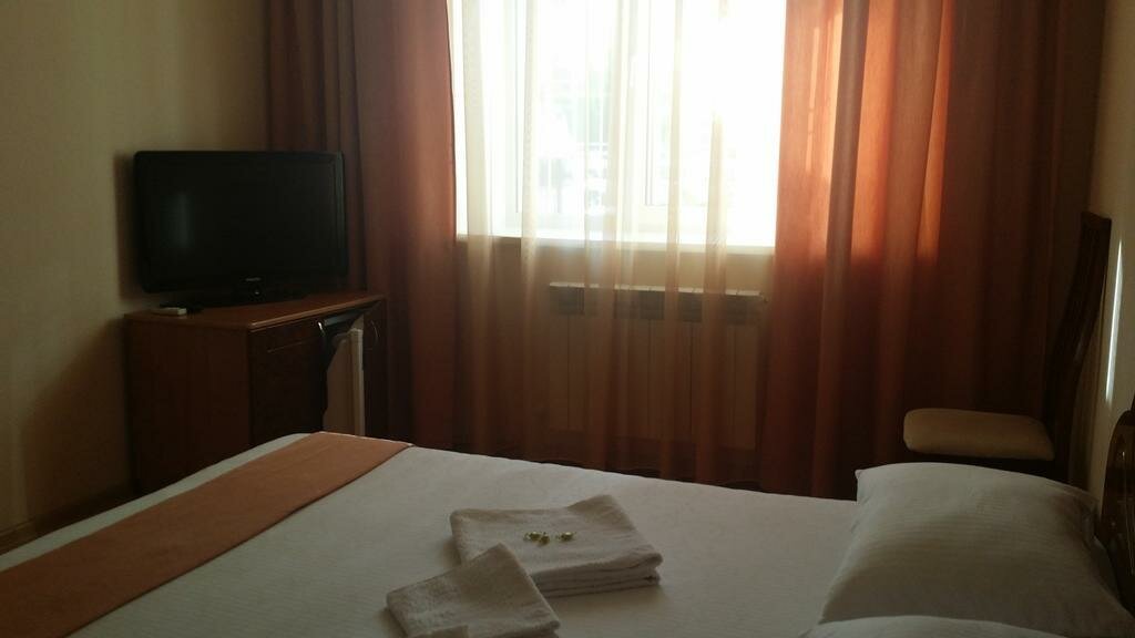Гостиница хорошая, чистая, в +40 днём, ночью спать прохладно, за счёт удобного расположения гостиницы. Есть общая кухня, кулер. В номере есть один халат, все виды полотенец. Нет фена, утюга и розетки расположены не очень удобно (если пользоваться своим феном). Есть телевизор, кондиционер. Набережная Волги рядом, но до пляжа придется пройти. Рядом центральный парк с развлечениями. Номер был на первом этаже и как ни странно и в самой гостинице и под окнами была тишина. Ездили в июле, взяли номер с одной большой кроватью, платили за номер 2500 в сутки.