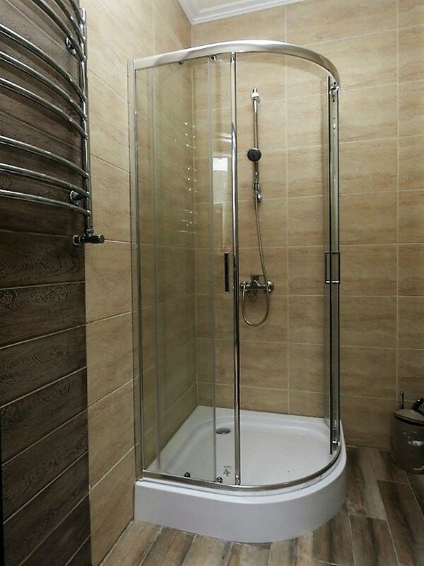 - Нет полочки для шампуня в душевой.