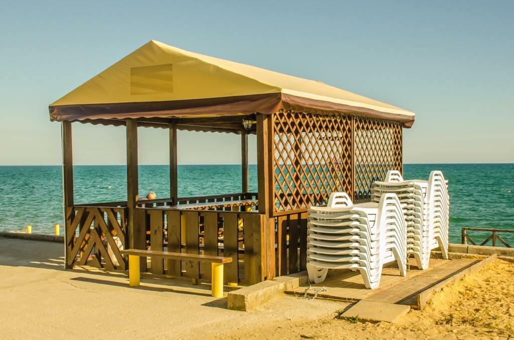 - Беседка у моря и свой кусочек пляжа.