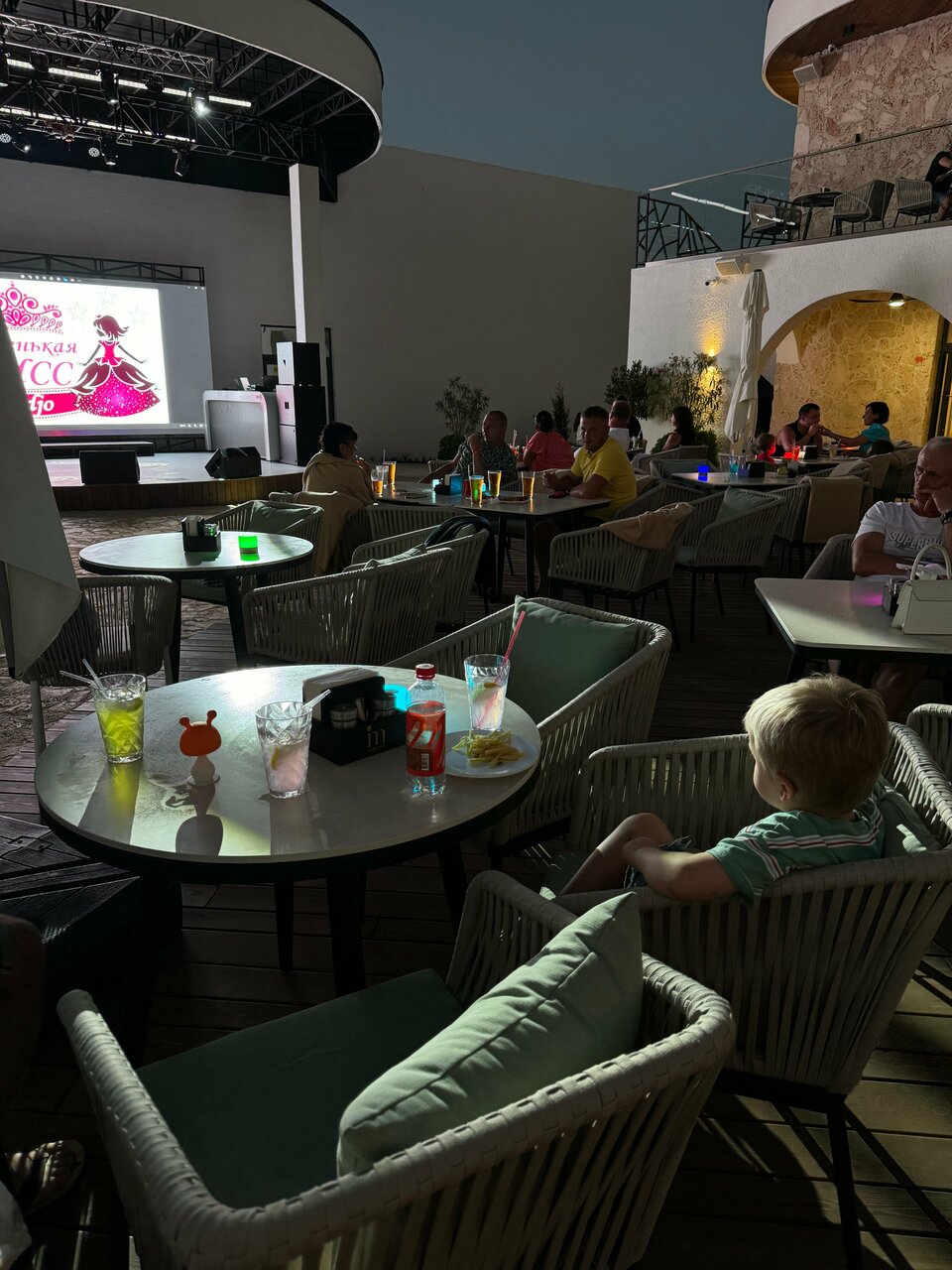 Прекрасное место.Однозначно стоит его посетить.Внимательный и вежливый персонал.Выбор еды не большой,но все оч.вкусно.Для детей есть аквапарк и игорвые комнаты,анимация.Особого внимания стоит комната с игровыми автоматоми.Респект барманам их коктейли лучшие. Из минусов,первое нет собственного пляжа.За отдельную плату можно взять лежак,100р с человека на весь день.второе снек бар.Вечером можно больше готовить пиццы или хот-догов.Все быстро разбиралось и долго ждали.