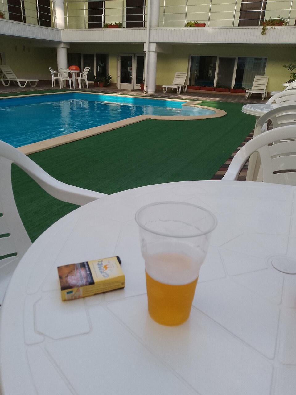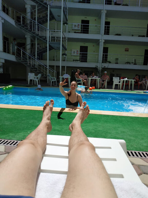 Самое главное-очень гостеприимные хозяева, сотрудники, номер был улучшенный стандарт с балконом, все необходимое в номере, В столовой блюда простые, но вкусные, цены маленькие, но если нужны деликатесы, это в город, там много кафешек! Бассейн вроде небольшой, но никогда не было, чтоб спокойно не поплавать.до пляжа 2-3 мин. Рекомендую!