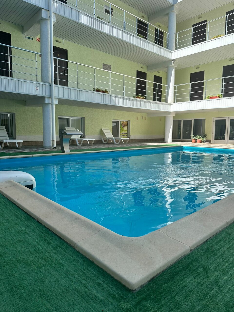 Отличная гостиница. Есть бассейн, сауна, тренажёрный зал, столовая до моря 7 мин. пешком. Отличный сервис. К посещению рекомендую
