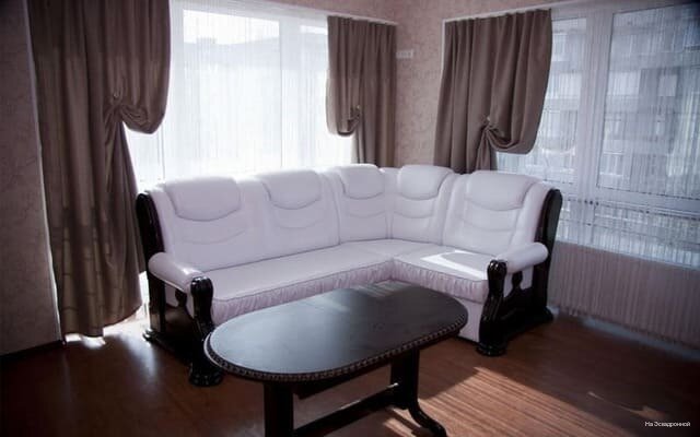 Мини-отель категории 2★ расположен на Эскадронной улице, 10, в 437 м от моря. Работает круглосуточно, предлагает номера с кондиционером, Wi-Fi, телевизором и холодильником. На территории: открытый сезонный бассейн, сауна, тренажёрный зал, кафе, детская площадка и парковка (бесплатно). Доступны платные трансферы, массаж, анимация и услуги няни. Разрешено проживание с животными.