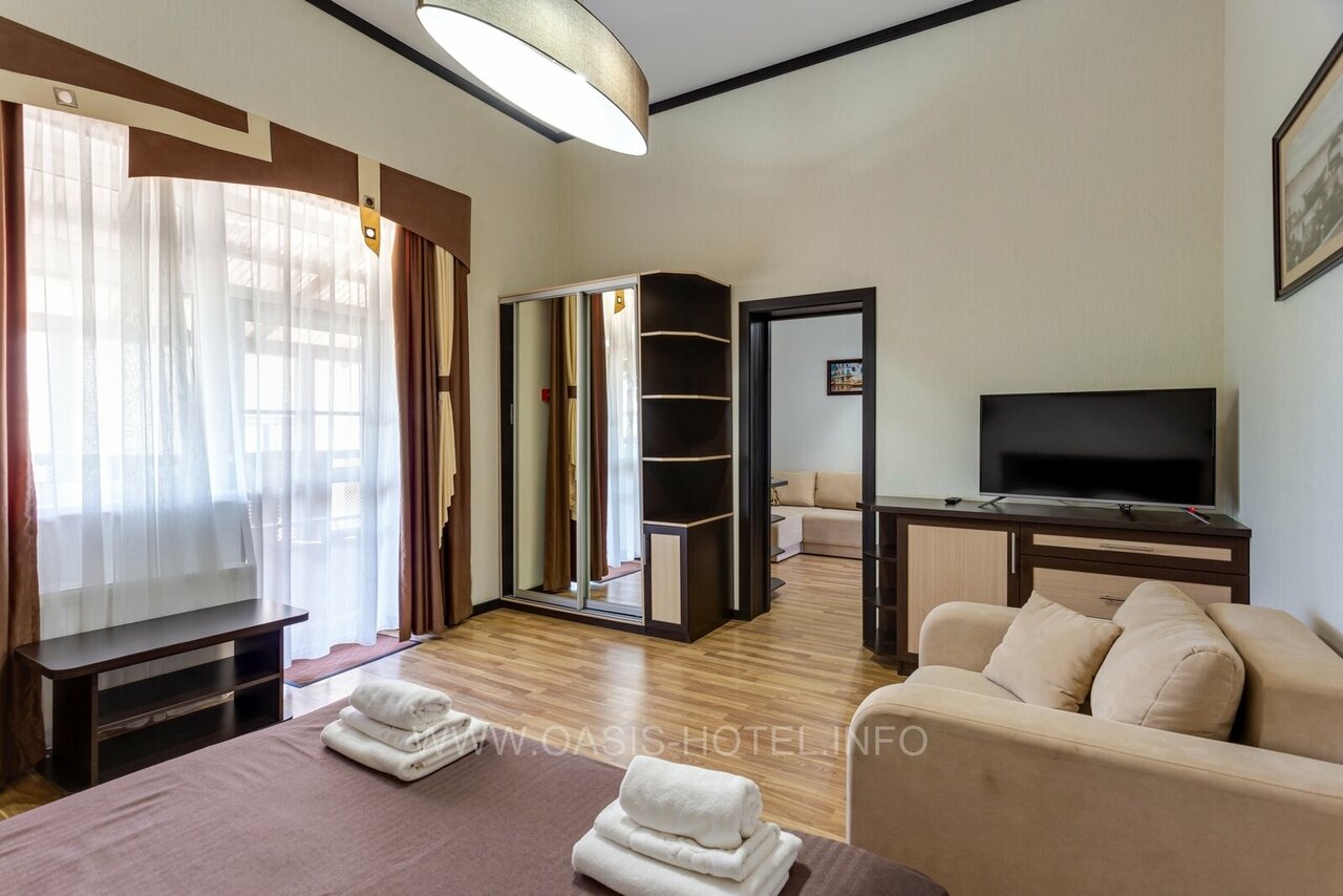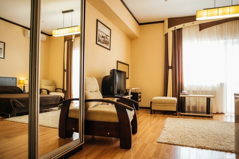 Условия: заезд с 13:00, выезд до 11:00. Контакты: oasis-hotel.info, +7 (978) 821-20-10.