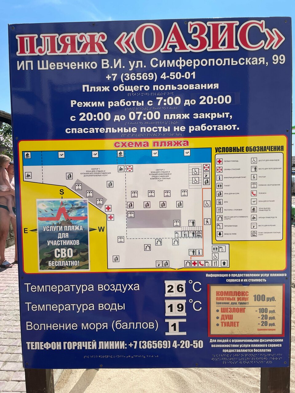 Здравствуйте! ‘4’- это честная и объективная оценка( имею ввиду платную зону)! Не хватает зонтов…да, есть навес,НО ,он далеко от воды ,а дети играют как раз возле неё… Если решится этот вопрос,то будет супер! Соответственно ,они (зонты)должны входить в стоимость 100р , которые берут за вход. Хочется отметить ребят-спасателей! Они молодцы! Помогают инвалидам!!! И делают это от души…Запомнились эти пареньки, которые на фото!) Всегда отзывчивые и доброжелательные! Привет вам!)