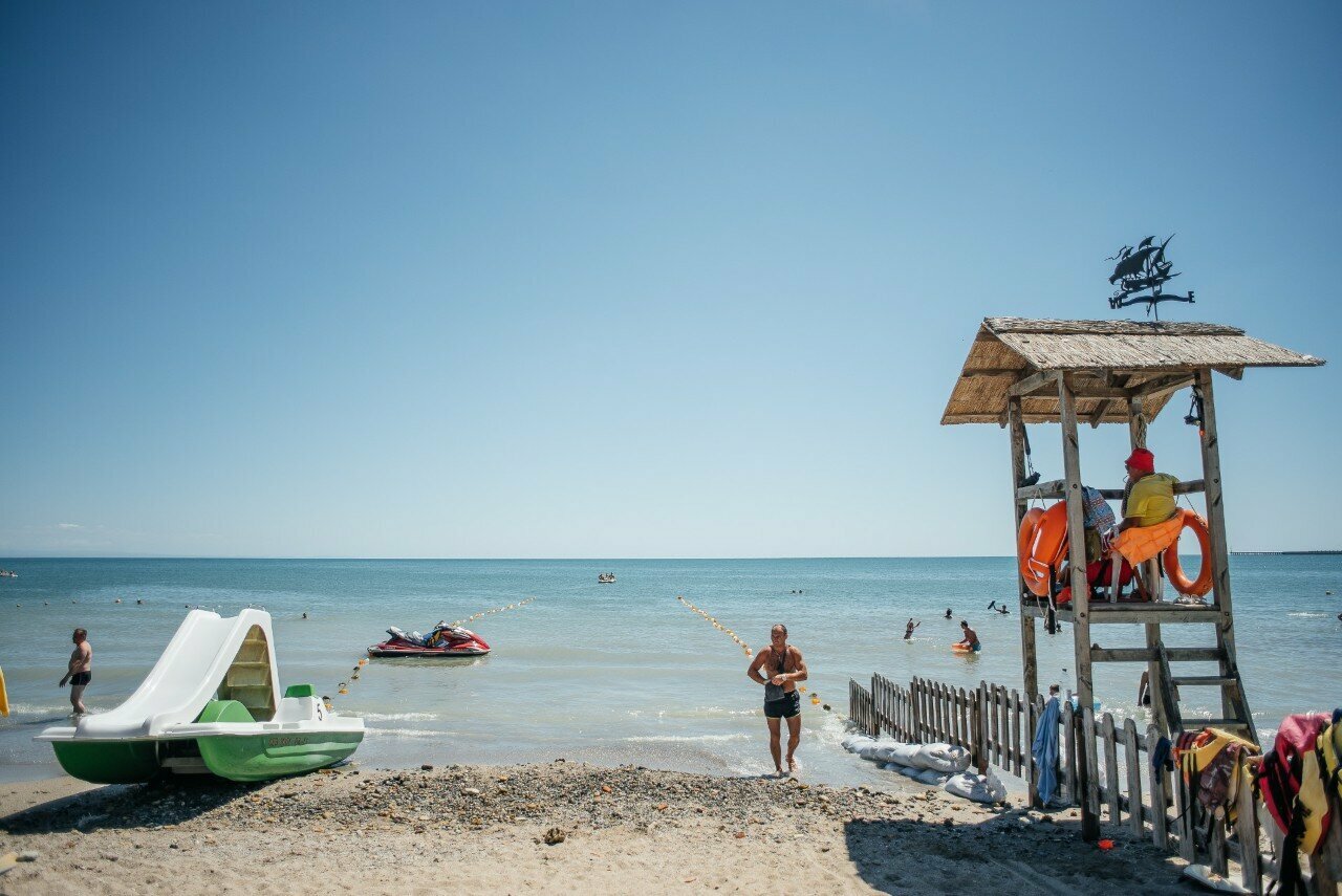 Все хорошо, чистый пляж (платный и бесплатный), для детей маленьких есть уголок. Кафе Корсар приятно удивили хорошей кухней. Но площадь самого пляжа маловата, соответственно народу кажется много напивается, но всех разместятся. За 100 рублей — лежак, душ, туалет.
