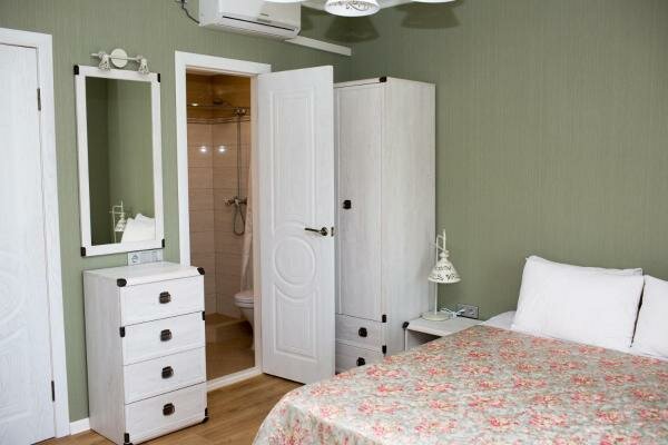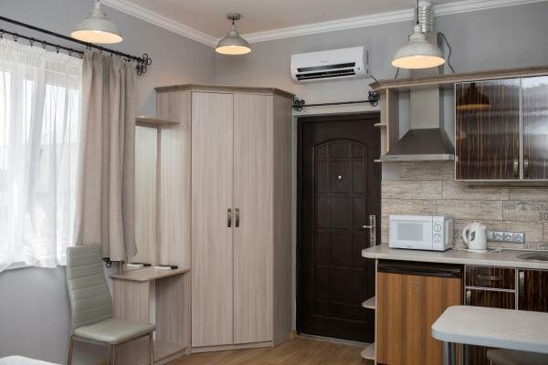 - Кондиционер в номере.; Ежедневная уборка.; Близость к морю.; Полностью оборудованная кухня (холодильник, микроволновка, плита).; Уютный зеленый дворик.