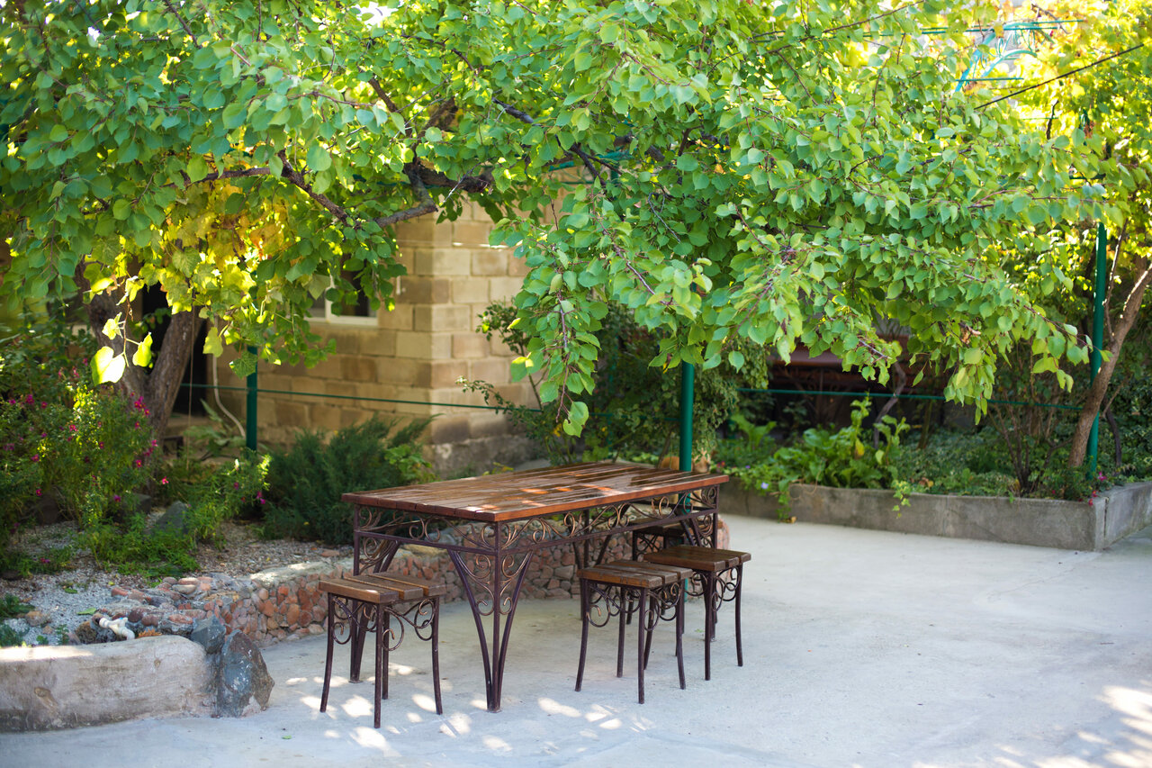 В этой гостинице я прожил 10 дней. Номер достался просто замечательный с балкона открывался вид на море. Удобный санузел, полностью оборудована кухня: есть холодильник, микроволновка, электроплита, раковина с холодной и горячей водой. Номер оборудован кондиционером и уборка номера осуществляется каждый день. В гостинице есть очень уютный и зелёный дворик, где можно отдохнуть под сенью винограда. Мне все просто очень-очень понравилось. Видно сразу, что хозяева гостиницы заботятся о своих клиентах.
