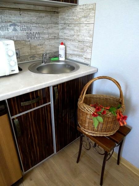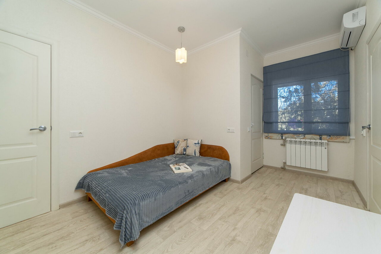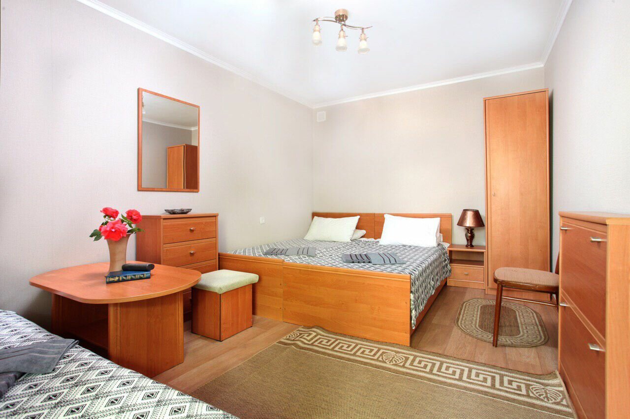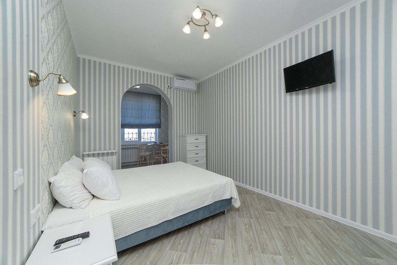 В номере: кровать 160*200, диван в разложенном виде 140*190, телевизор, кондинционер,wi-fi, фен. Кухня: плита, холодильник, микроволновка, электрочайник.Номер расположен на третьем этаже.
