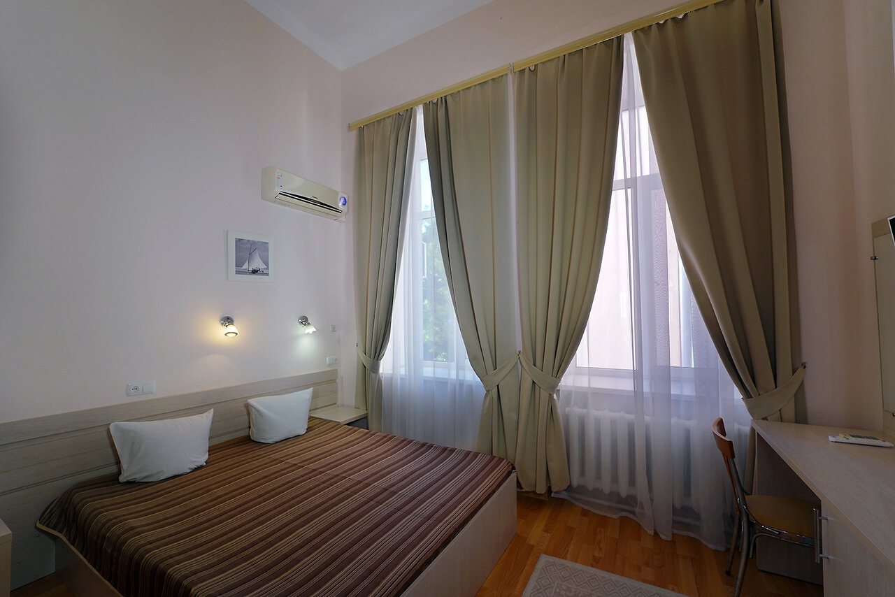 - Просторные номера с высокими потолками.