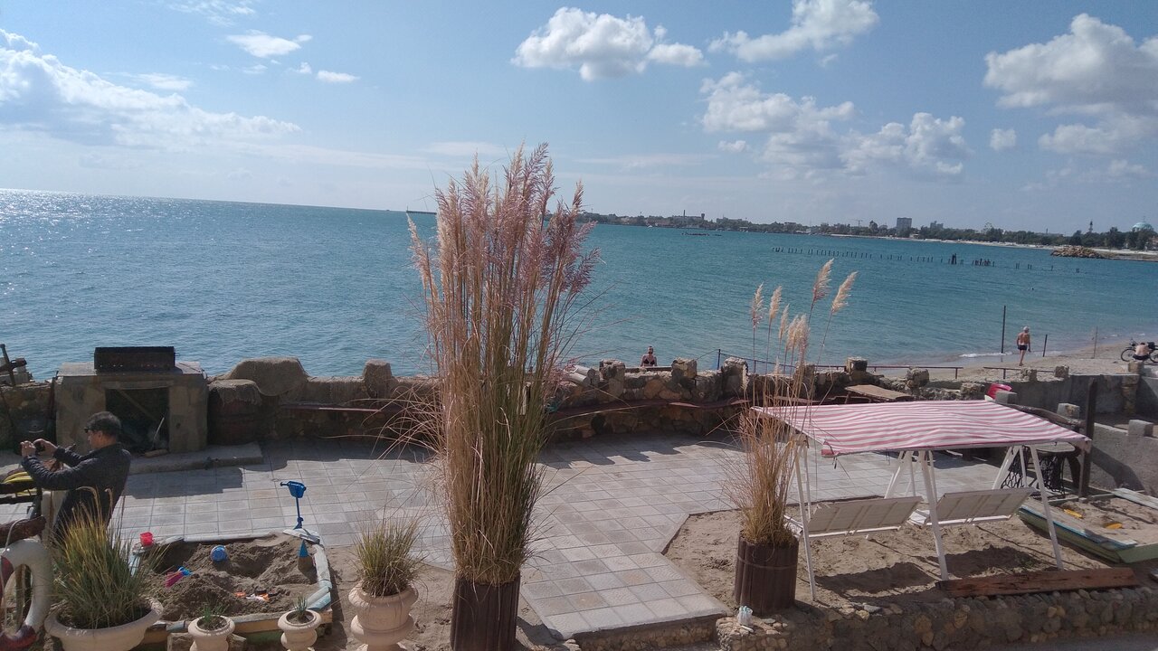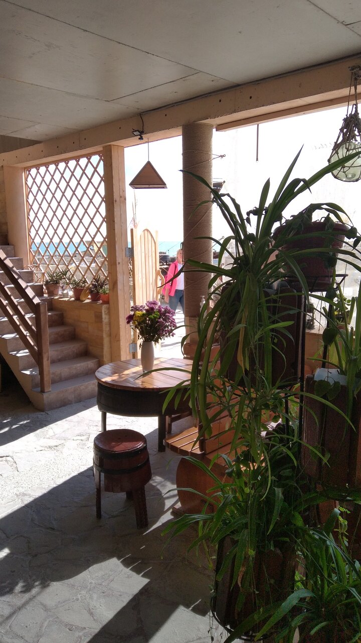 Отдыхали семьёй. Нам очень всё понравилось Жили на втором этаже, номер с видом на море! Засыпаешь под шум волн) На первом этаже кафе, кормят вкусно! Номер убирают, вовремя меняют постельное бельё! Стирать вещи в машинке бесплатно, только купить свой порошочек) Хозяйка Юля очень доброжелательная! Для деток на первом этаже есть попугаи, черепашки, кот Рыжий. В общем, мы остались довольны-приедем ещё)