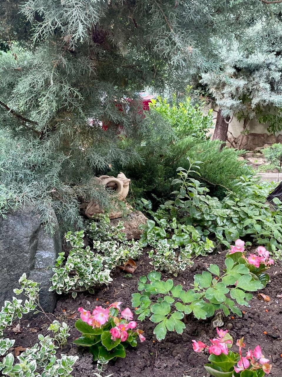 - Красивая зелёная территория с цветами.