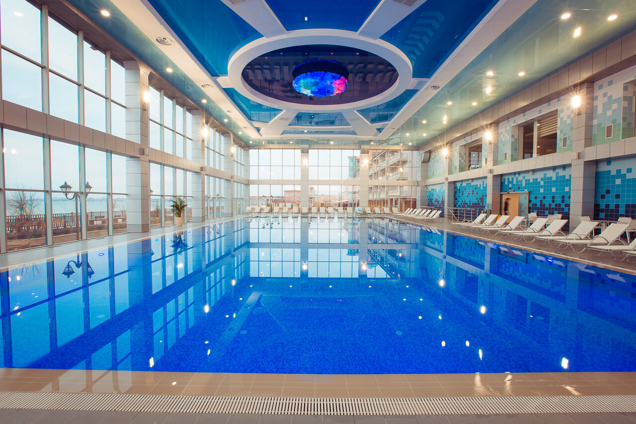 - Наличие крытого подогреваемого бассейна и спа-центра.