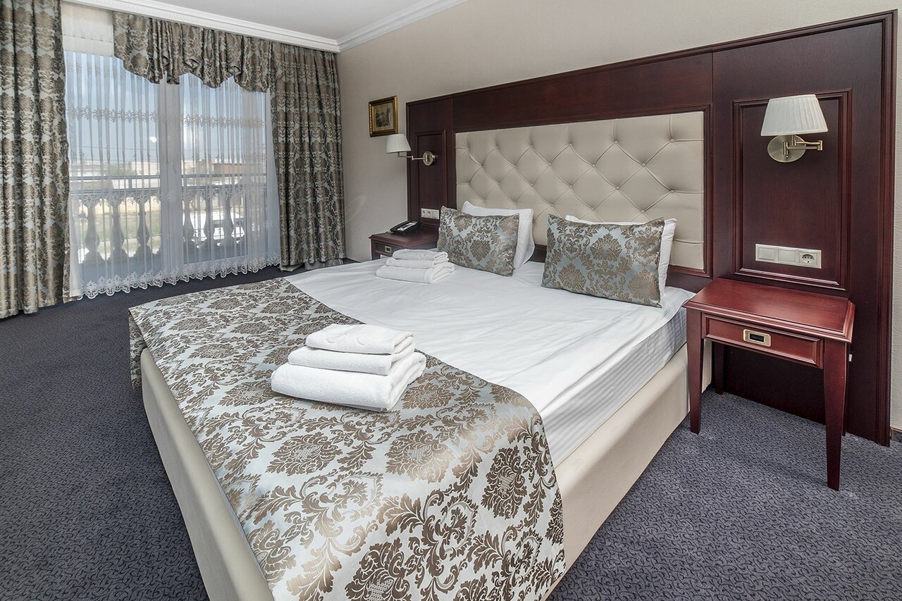 Удобства: ✔ Собственный песчаный пляж, открытый и крытый подогреваемые бассейны, СПА, тренажёрный зал, сауна, хаммам ✔ 3 ресторана, 4 бара, питание по системе «всё включено» или завтрак по меню ✔ Бесплатная парковка, трансфер (платный/бесплатный), прокат велосипедов и авто ✔ Детская площадка, анимация, игровая комната, услуги няни ✔ Конференц-зал, бизнес-центр, банкетные услуги