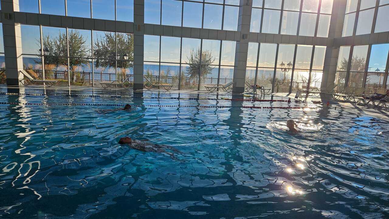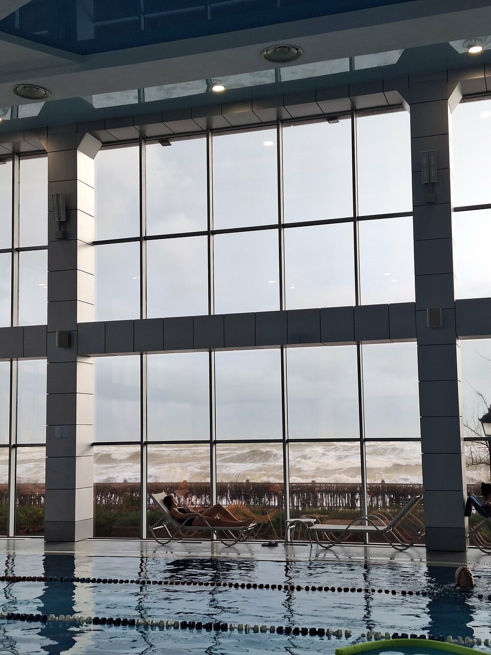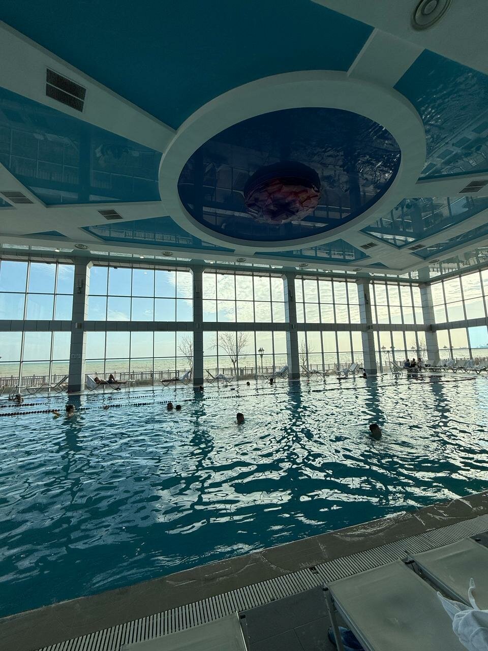 - Большой бассейн (чистый, теплый, с панорамными окнами).