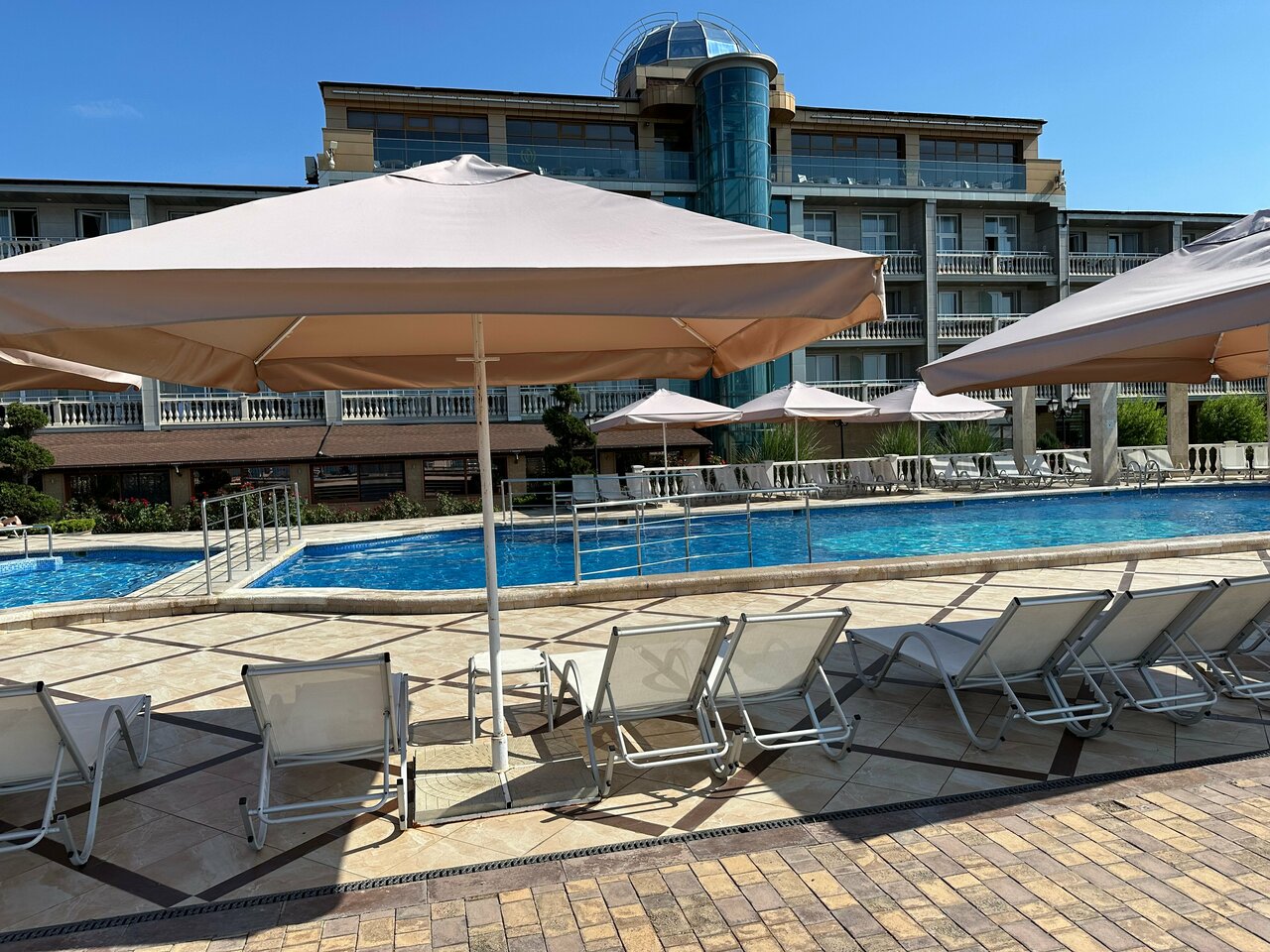 Удобства: — Собственный песчаный пляж (1000 м²), открытый и крытый подогреваемые бассейны, водные горки, детский бассейн. — СПА-центр с массажем, хаммамом, сауной и оздоровительными процедурами. — 3 ресторана, 4 бара, питание по системе «всё включено», полупансион или завтрак. — Тренажёрный зал, теннисный корт, анимация, дискотека, детский клуб. — Бесплатная парковка, трансфер (платный), прокат велосипедов и авто.