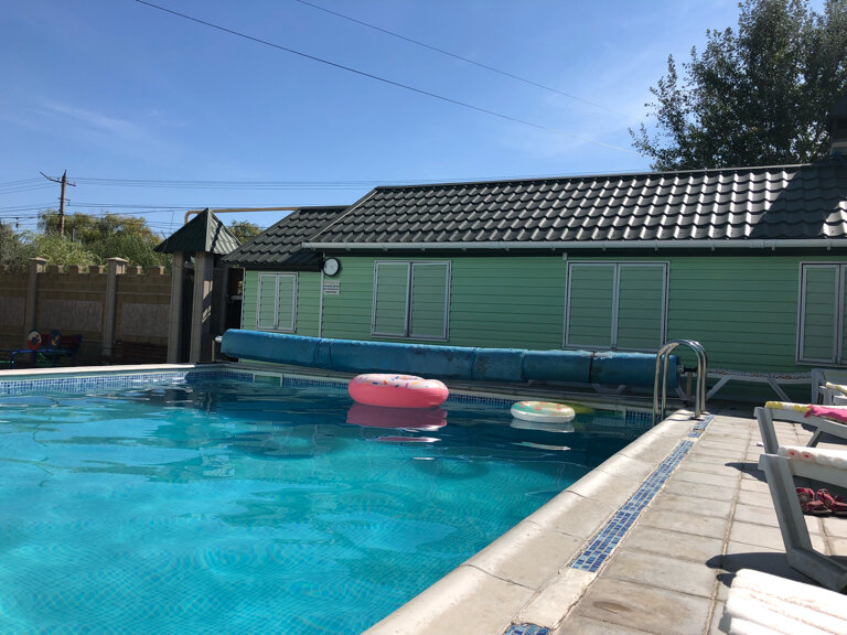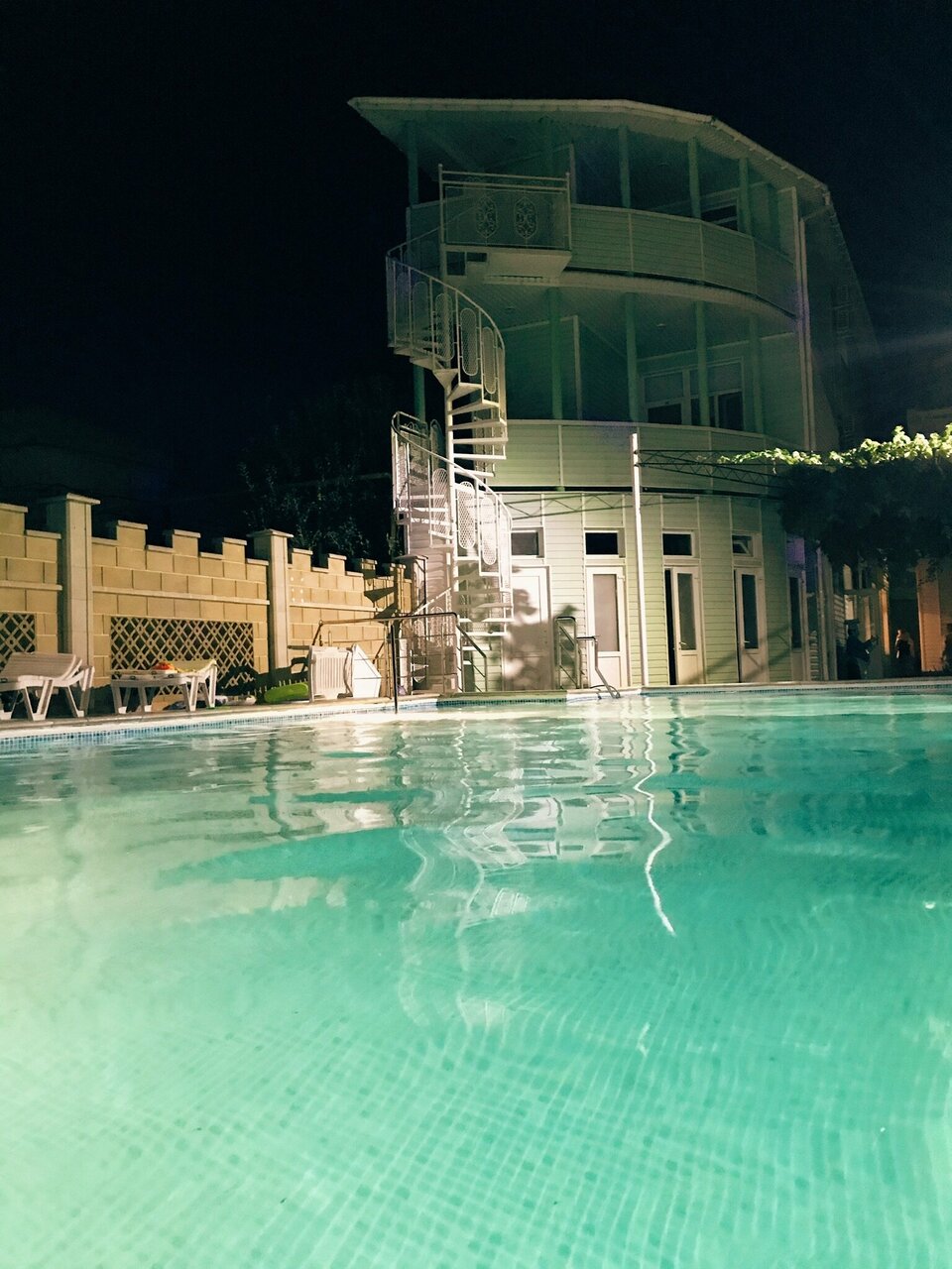 Всё продумано до мелочей: расположение зон (кухня, столовая, бассейн и т.п.), бассейн с подогревом и зоной для загара, веранда с мангалом, игровая комната и т.д. Бесплатный пляж в пяти минутах от пансионата спокойным шагом. Хорошая мебель и обстановка в комнатах. Неделеко расположена конечная остановка трамвая: это позволит поехать в город с комфортом. Нам понравилось. Ребенок разрывался каждый раз между игровой комнатой с аниматорами и пляжем. Если снова поедем в Евпаторию, то скорее всего остановимся снова у них.