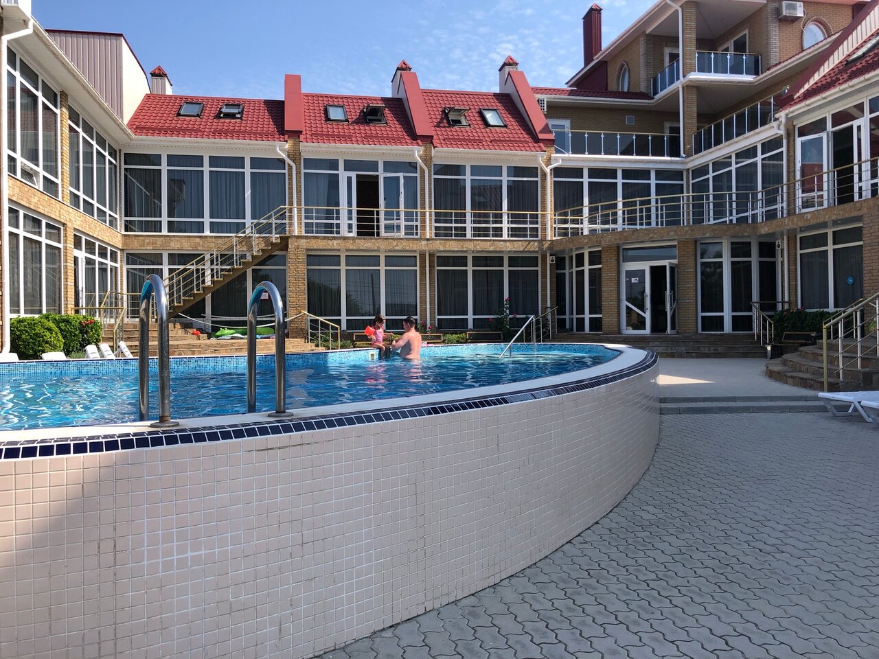Гостиница супер, очень комфортные номера, чисто уютно, прекрасная территория, детская площадка, вечером анимация бывает, бассейн — чистый, на Территории своё кафе- еда очень вкусная, можно подать в номер, но есть места и на улице и в помещении. Правила строгие, после 22 часов не шумят ( до 08 утра)- поэтому ваш отдых ничто и никто не омрачит! Пляжи все через дорогу, их много, на любой кошелёк, а можно и бесплатно но чуть подальше. До пляжа Лазурный берег добирались на машине, нас это не смущает. Мы сняли Большой семейный номер — Кухня, две комнаты, ванная, туалетная комната- все помещения отдельные- никто никому не мешает. На окнах москитные сетки. Рекомендую и надеюсь сама вернуться!!! Вполне цивилизованная Гостиница !!!