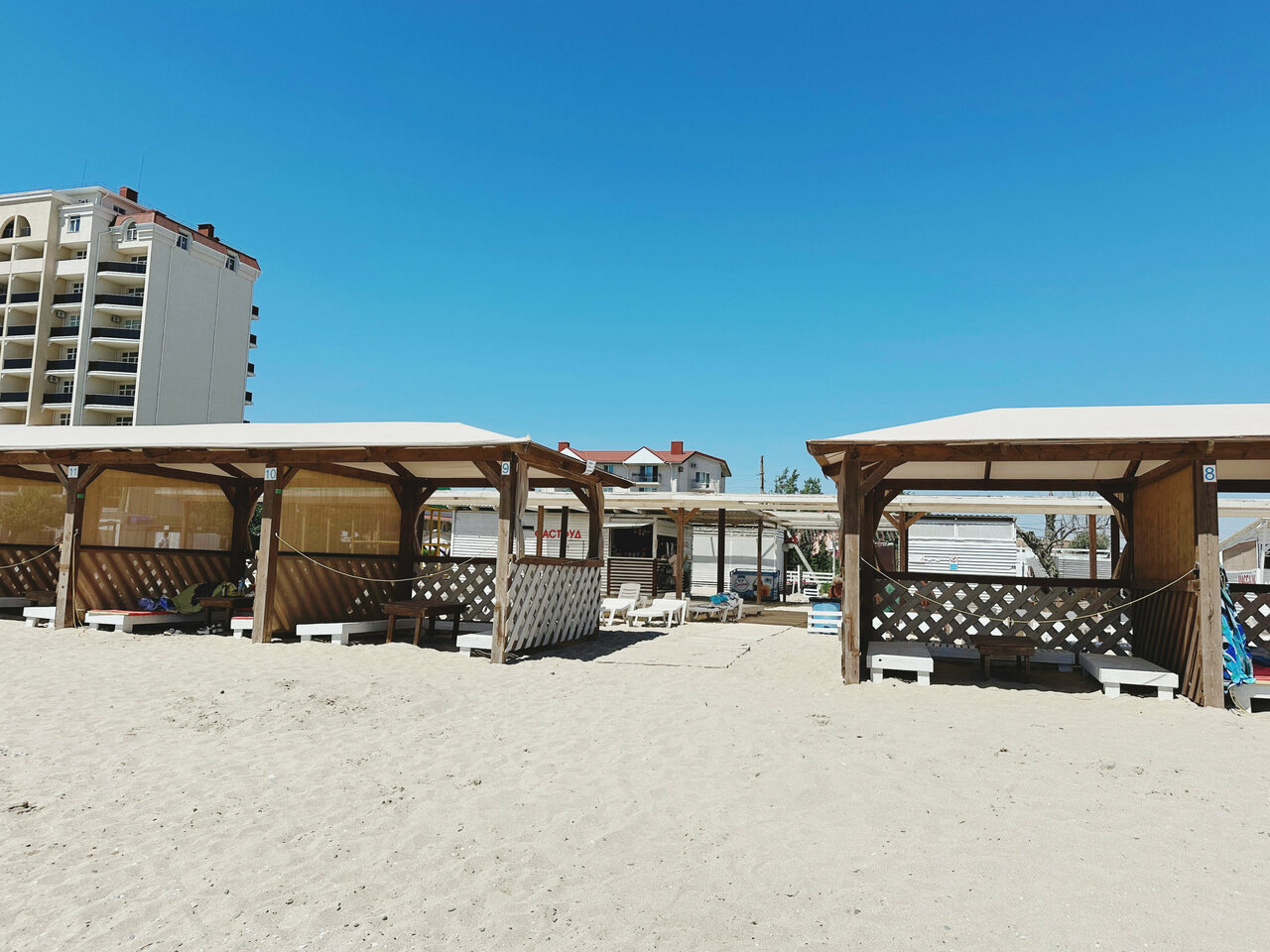 - Чистый, оборудованный пляж (лежаки, бунгало, уборка).