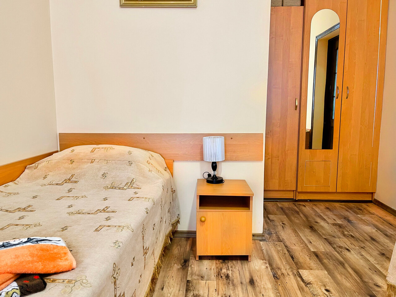 Из плюсов в шаговой доступности хорошие пляжи (местные жители, как раз из центра и едут на эти пляжи), рядом остановка, маршрутка идёт через центр. Есть детская площадка. Кормят хорошо, да не шведский стол, но каждый день разные блюда, вкусные и сытные. Уборка номеров каждый день. Из минусов конечно очень неуютные номера, старая мебель, сантехника. А так в номере в принципе все что нужно есть.