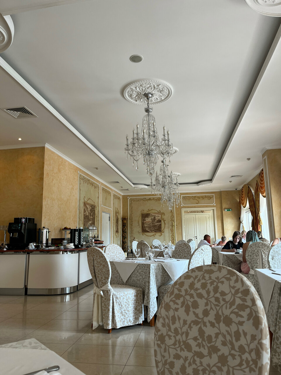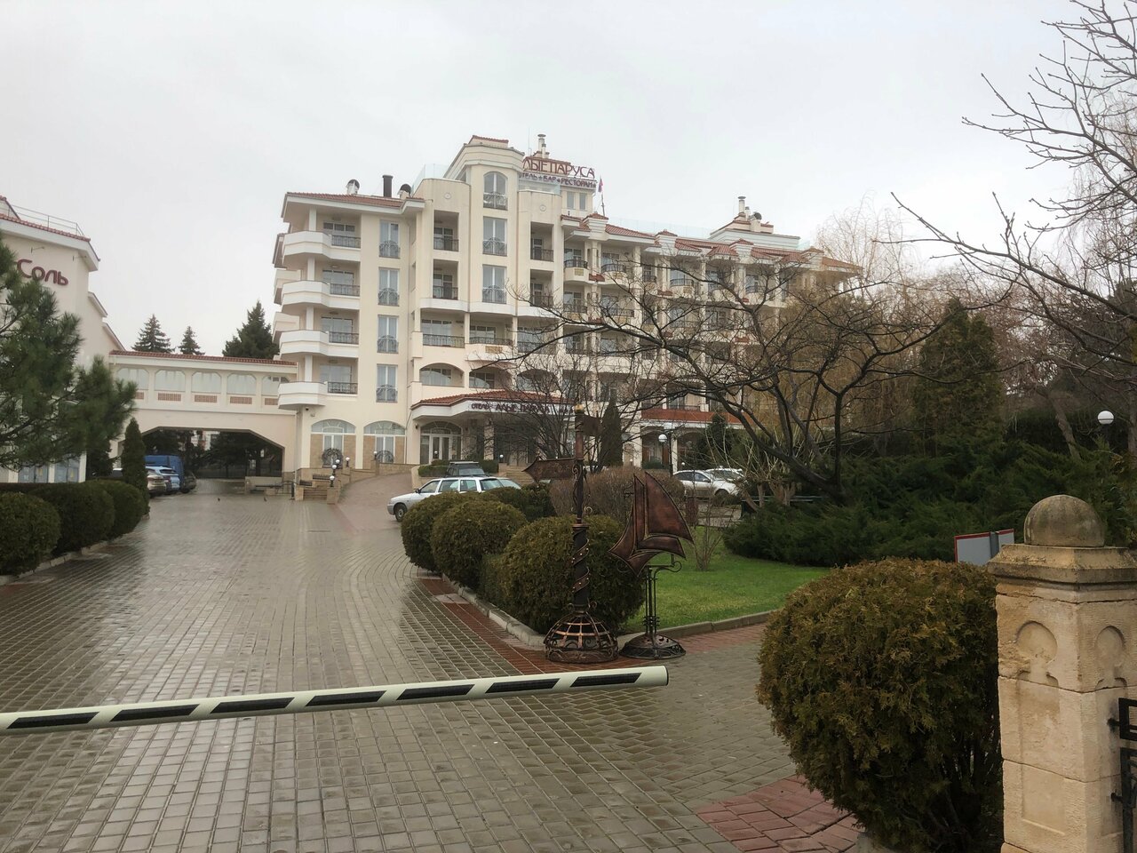Симпатичный, местами помпезный отель. Лучший в Феодосии. Зимой скучновато, конечно, но это к отелю не относится. В номере тепло, но нет воды. Только на этаже кулер. Не совсем понятно, ночью захотел попить, надо бежать в пижаме по этажу за водой? Странная экономия, признаться. Завтрак на 3+. Яйца только вареные. Если пришел за полчаса до окончания завтрака, то подносы уже не обновляют. Кончился язык — всё, больше не принесут. Кончились яйца, минутной готовности — выбирайте что-то другое или ‘возьмите кашу, её много’. Но, я не ем кашу! Думаю, что летом всё иначе, но при стоимости номера зимой 5000 в сутки, можно уж воды поставить в номер и яиц сварить, чтобы всем хватило, тем более, что отель, судя по завтраку, вовсе не пустой. Парковка есть, сантехника работает, в номере ванна, не душевая кабина, персонал вежливый, горничные здороваются.