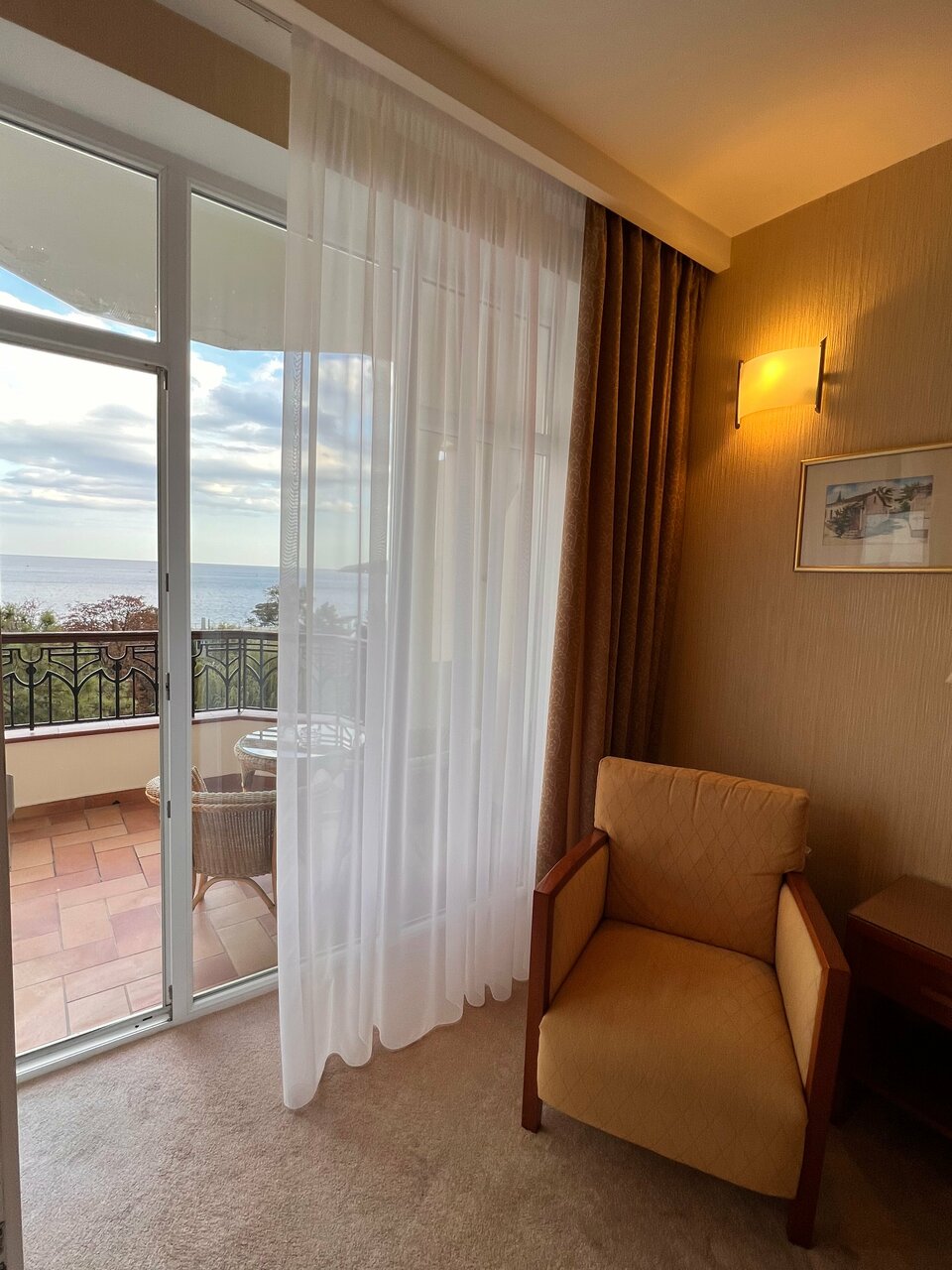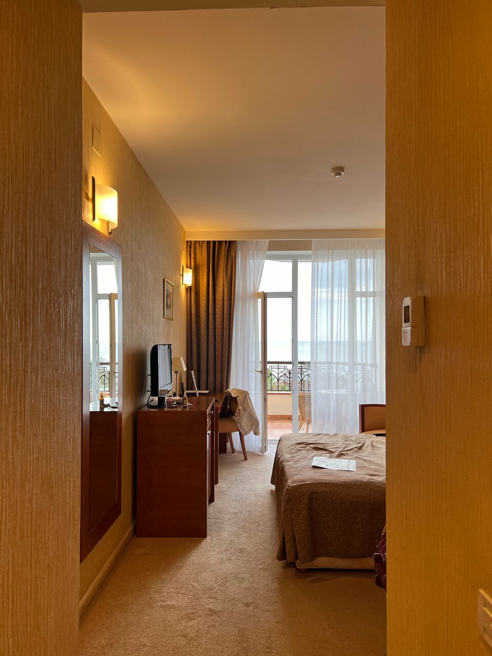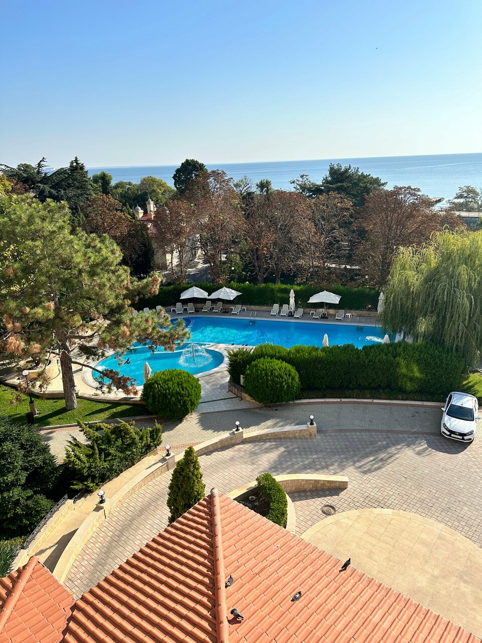 Прекрасное расположение отеля, прямо на набережной, в 2 мин от моря. Номер был на 4 этаже, вид на море, встречать рассветы на балконе- это особый вид удовольствия. Ресторан чудесный, завтраки шикарные. Территория зеленая, ухоженная, все сотрудники приятны и вежливы. Нареканий нет, с удовольствием вернемся еще не раз.