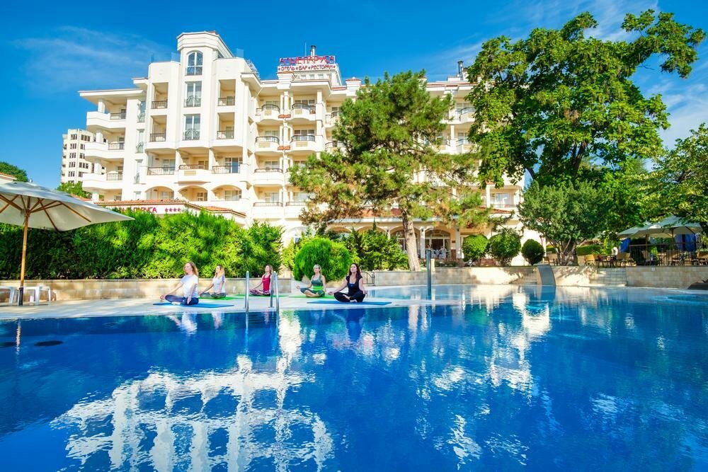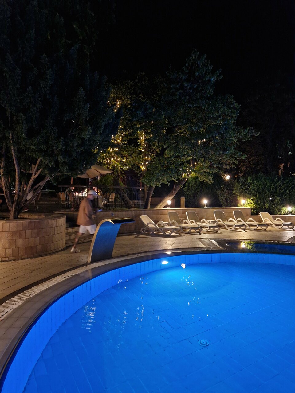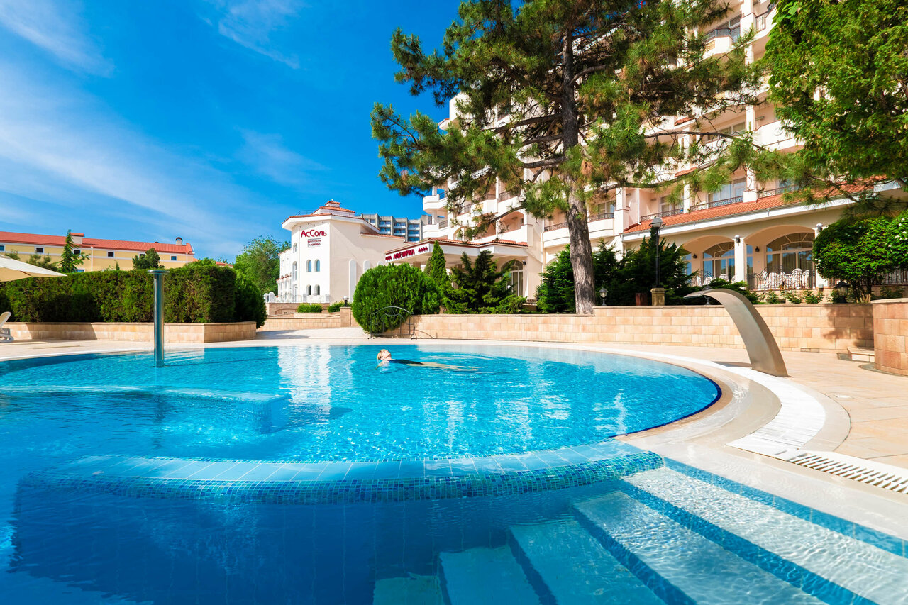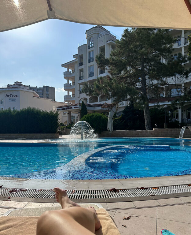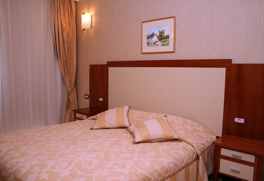 Замечательный отель. Ежедневная уборка и чистота в номерах и санузле. Очень здорово, что в услуги отеля входит посещение бассейна в плавательном клубе Катран. Попасть туда можно, не выходя из отеля по переходу. Есть так же небольшой бассейн на территории с подогреваемой до разумных значений водой, рядом с бассейном — шезлонги. Не хочешь на пляж, здесь загорай. А хочешь на море, вас отвезут на пляж на микро-автобусе, пляж песчаный, зонты и шезлонги там тоже есть. В отеле так же можно поухаживать за собой: уходовые процедуры для лица и тела, а также массаж. Мне посчастливилось попасть к массажистке Наталье. Мало того, что профессионал замечательный, да ещё и человек хороший. Рекомендую!