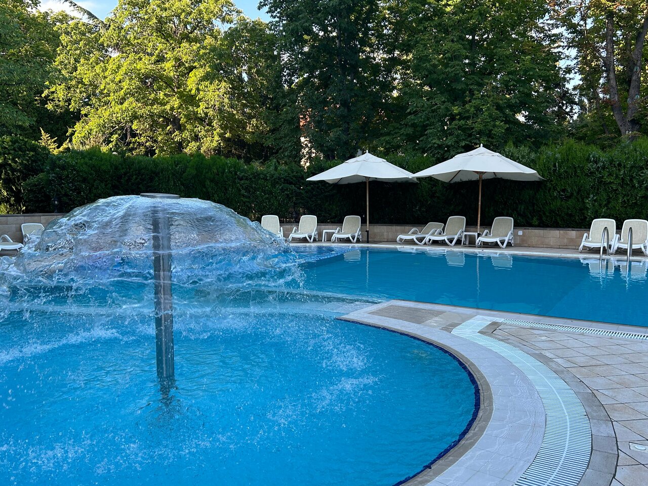 - Удобные зоны отдыха (шезлонги у бассейна).