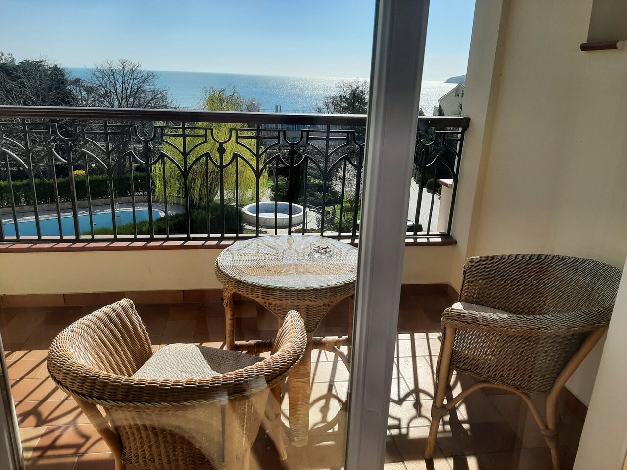 - Красивый вид из номеров (балконы с морем).