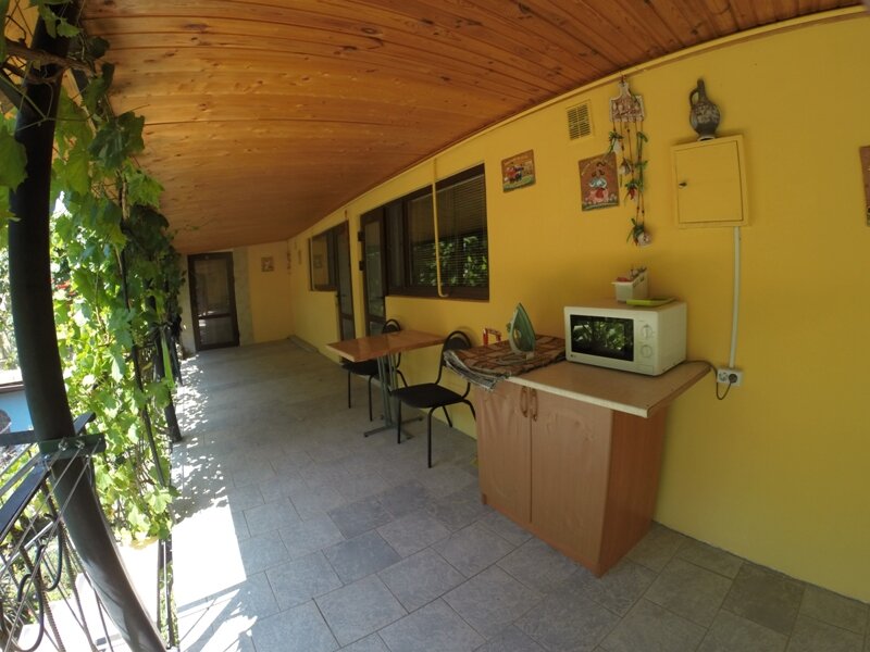 Хороший гостевой дом, дображелательные хозяева, чисто, удобное расположение, все в шаговой доступности, до моря идти минут 1015,смотря как шагать. Есть мангал для шашлыка, детская зона отдыха, небольшая библиотека, хороший внутренний двор и бассейн с рыбками. В номерах есть посуда, микроволновка, чайник, санузел,кондиционер. Приезжали 2 раза. Рекомендую.