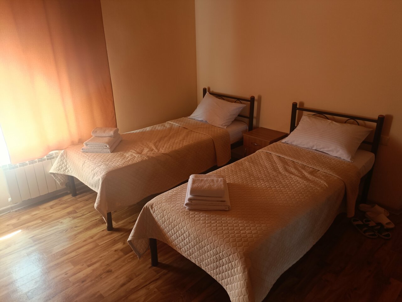 жили 10 дней и честно говоря, минусов много. душ плохо работает, словно ему сто лет в обед, в номерах если моют, то очень плохо, так что можно этим даже не пользоваться. на кухне грязно, никто не следит за порядком, чайники постоянно в накипи и грязи, тарелки в разводах, потому что нет элементарных сушилок. на всю гостиницу одна плитка и постоянно нужно стоять целую очередь чтоб приготовить покушать. в последние дни начали замечать во дворе много тараканов. в персонале 3 пожилых женщины, которые явно не заинтересованы в работе хорошее тоже есть: достаточно удобные кровати, кондиционер, маленький холодильник, ногомойка, которая на таких пляжах, да и в принципе очень нужная вещь. на территории есть курилка(в номерах курить нельзя). присутствует столовая, есть платный мангал, стиральная машинка гладильная доска и утюг. на кухне есть посуда, но пользоваться ей кажется опасной идеей