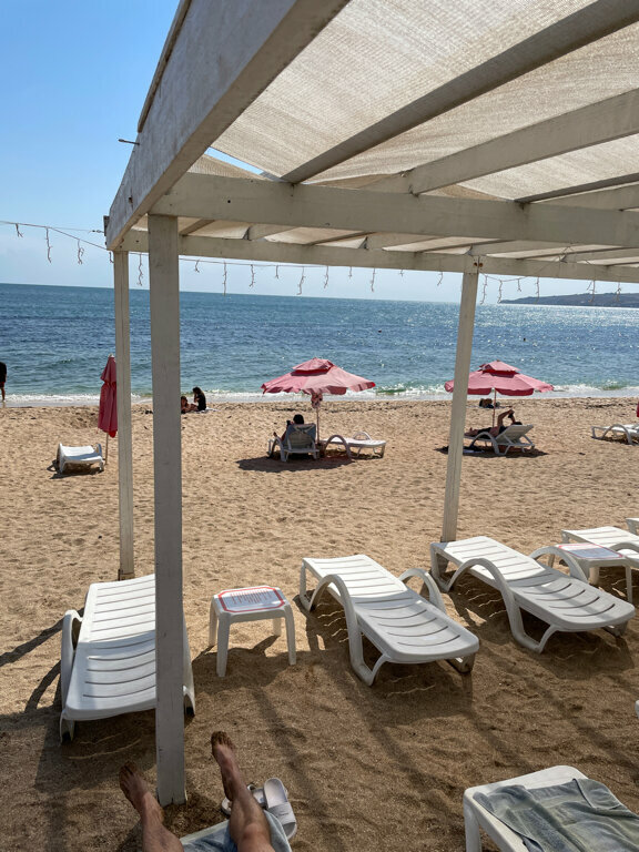 Очень атмосферненько. Рекомендую. Море просто Чудеснейшее. Особенно если будет возможность номер рекомендую с балконом. Всё на уровне. Так что будете очень довольны. P. S. Первейшая линия. 10 секунд до моря.